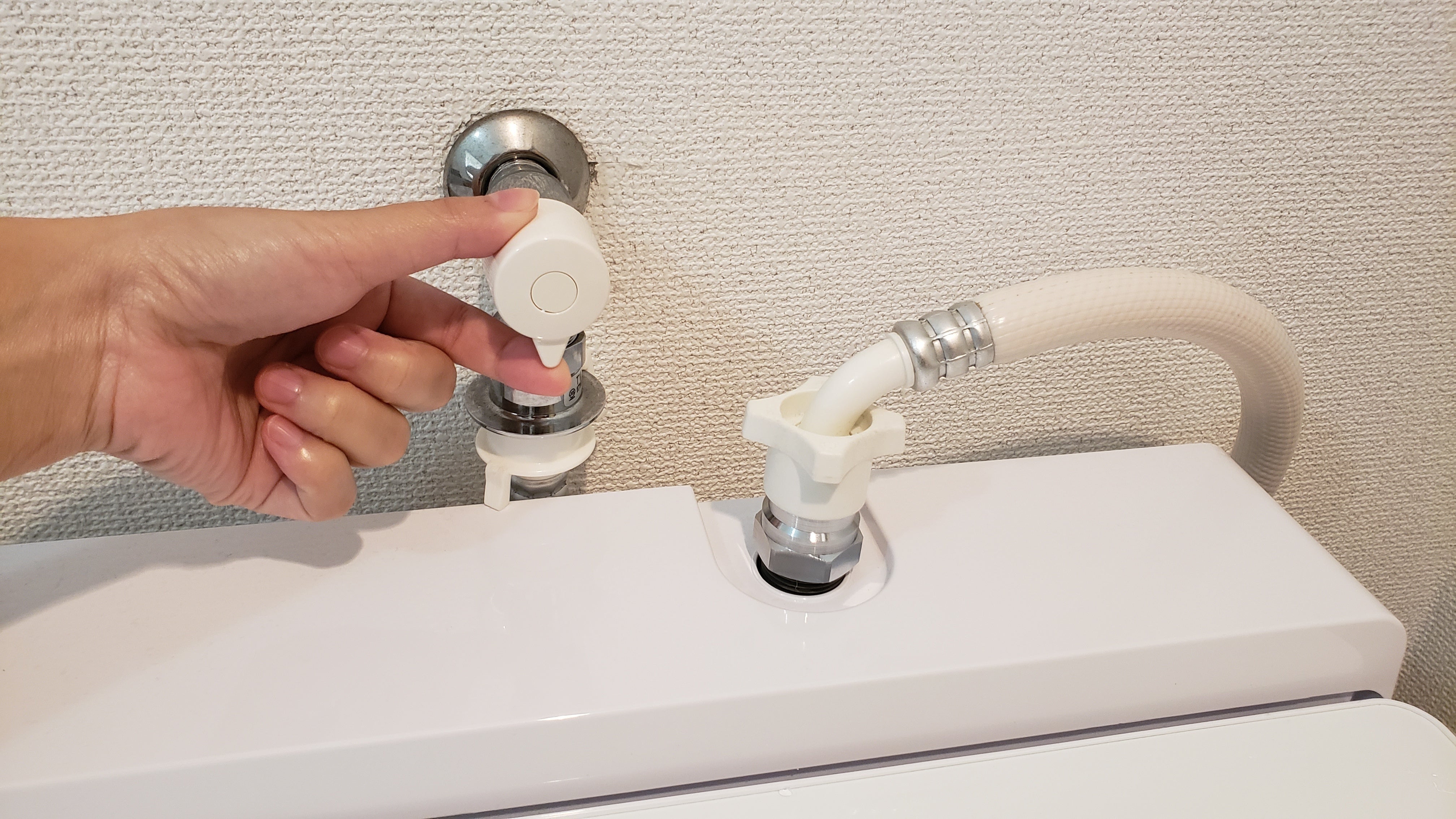 1.水を止め、タオルを使い洗濯機側のホースを外す