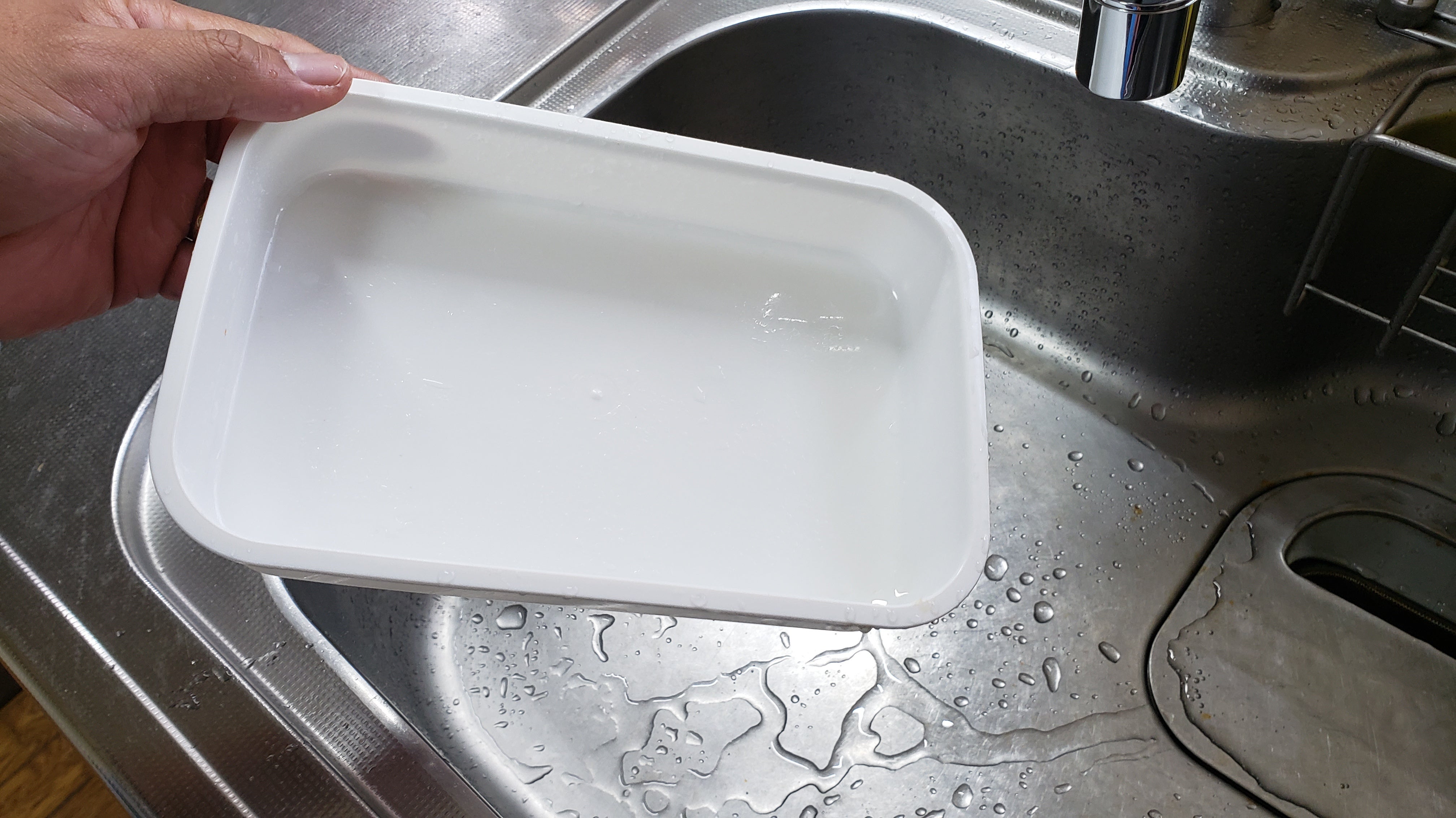 弁当箱に残った、落ちにくい頑固なラー油もこの通り!ラクラクツルツルピカピカ!