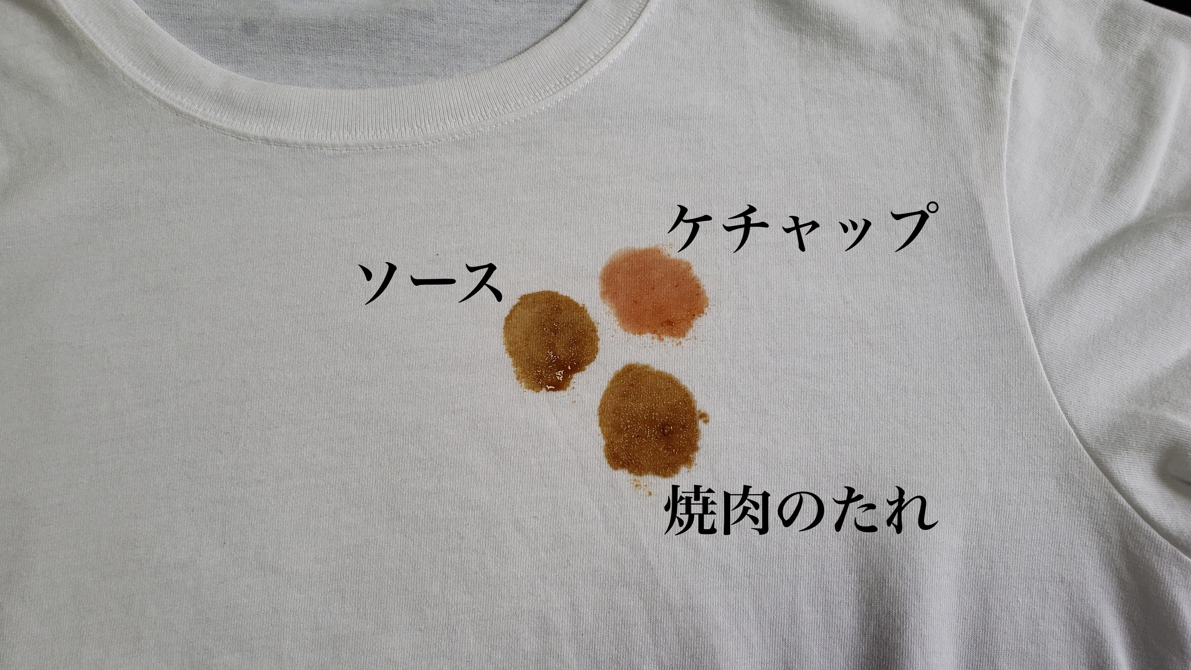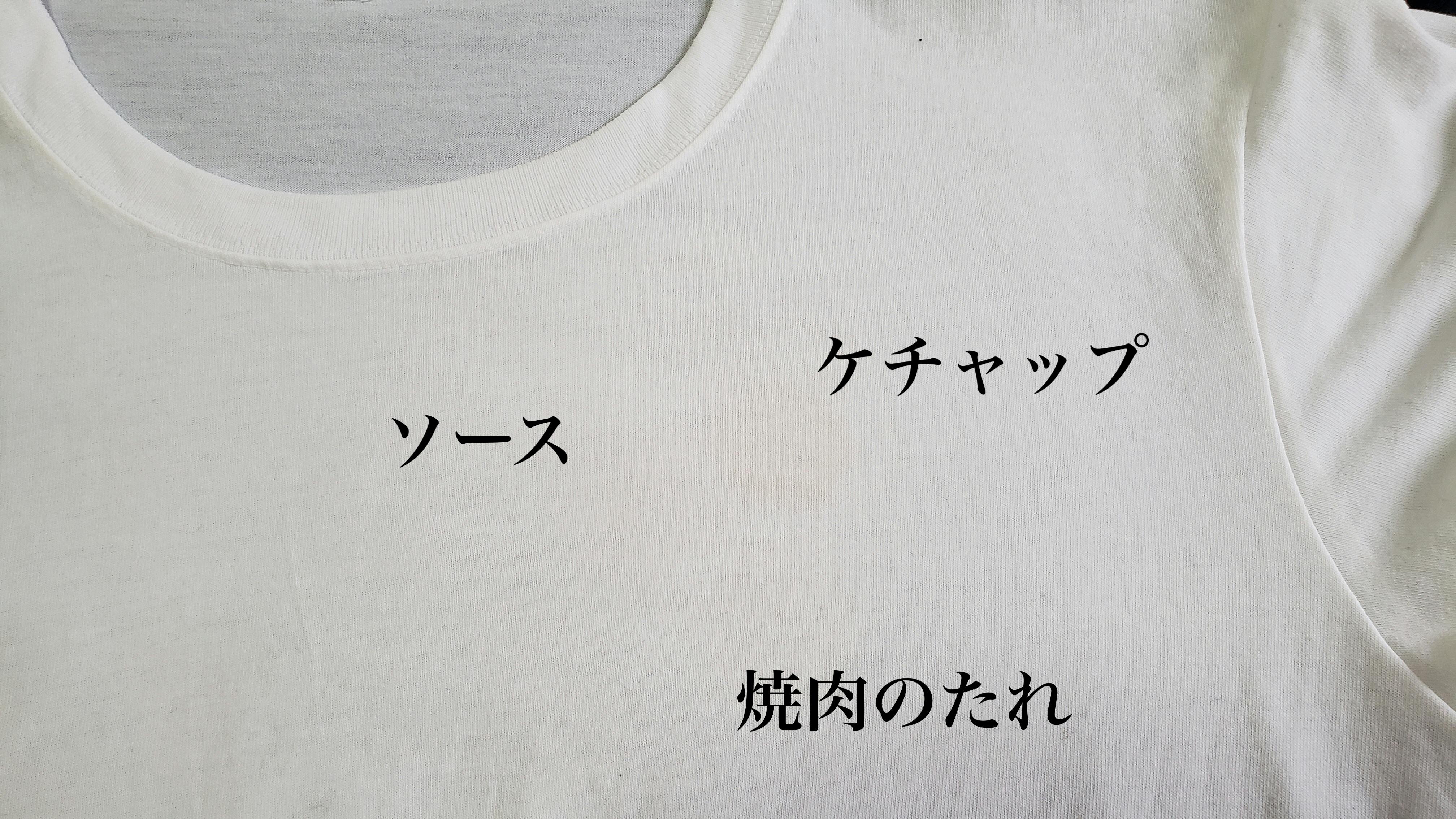 ※このケチャップのように落ちにくい汚れは、洗剤を使ったもみ洗い等を行っていただくことをオススメします。