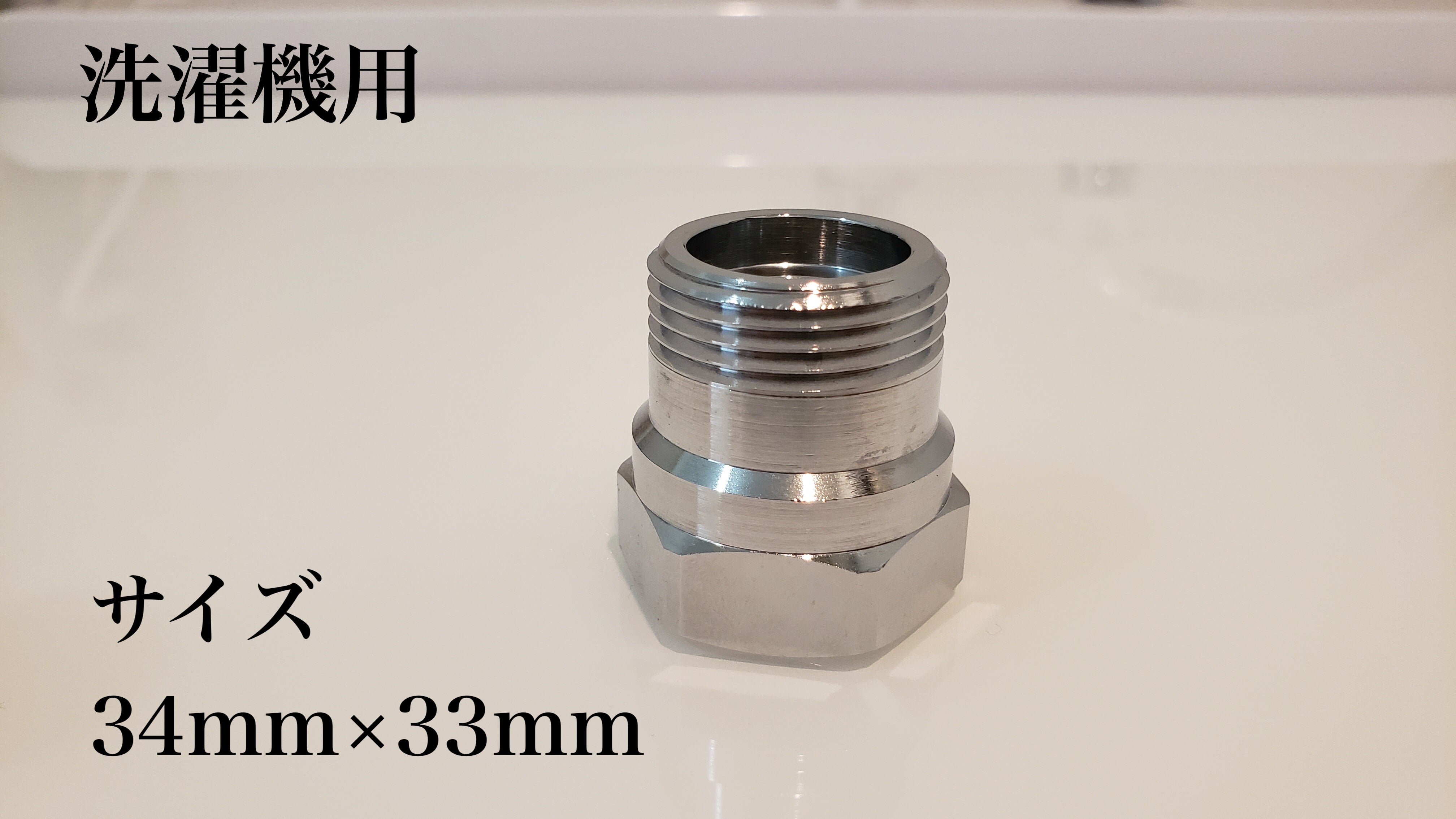 2.付属のパッキンをアダプター(金色部分)に付けて、洗濯機に装着する