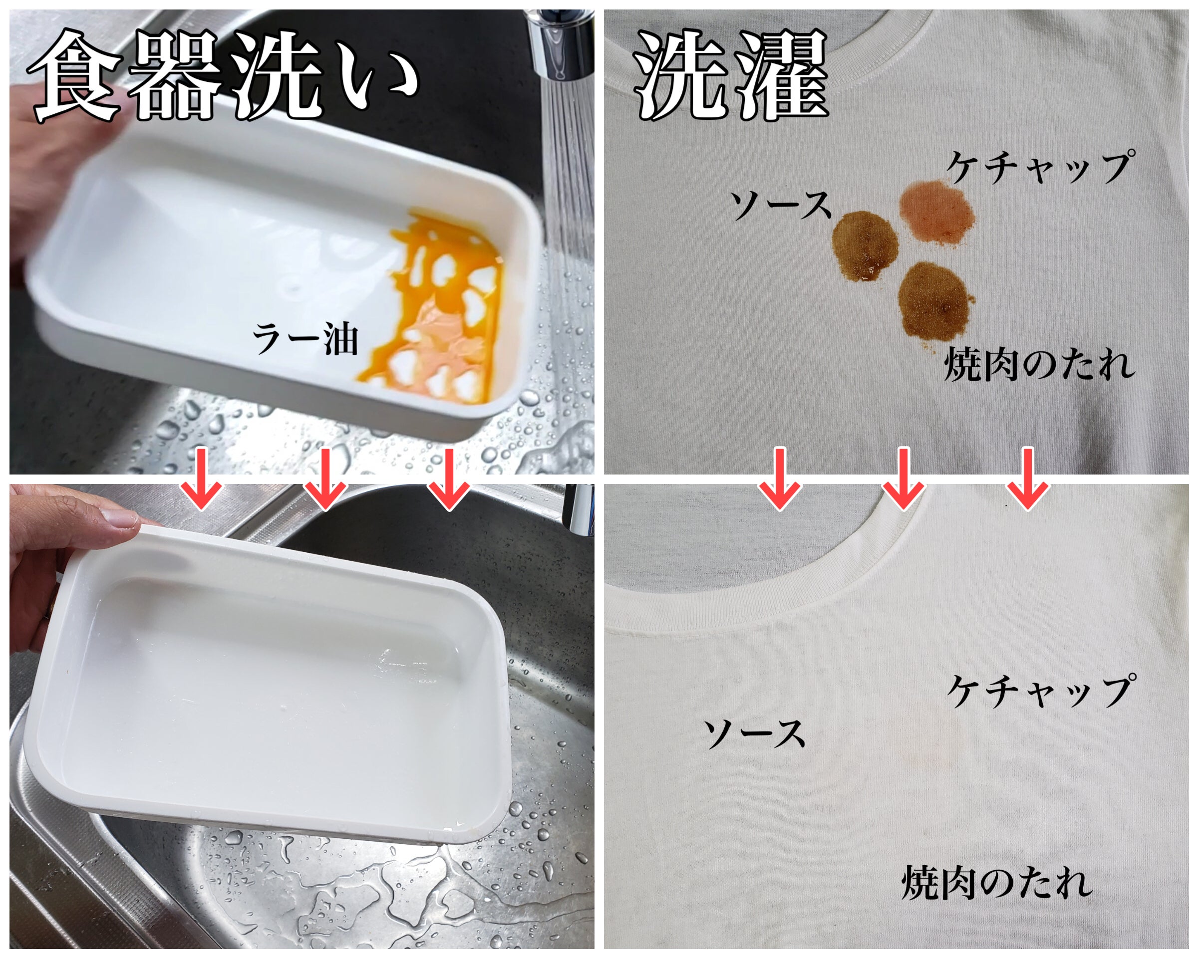 ケチャップがうっすら残りましたが、ソース、焼き肉のたれはキレイになくなりました。