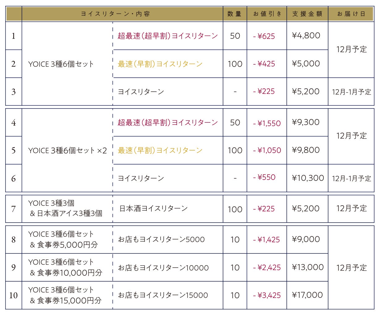 【YOICE リターン一覧】