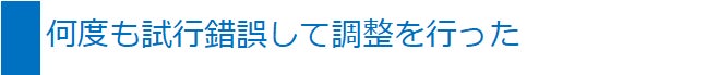 矢野様と何度もディスカッションを行い、プロトタイプのレシピをベースに様々なパターンテスト頂きました。