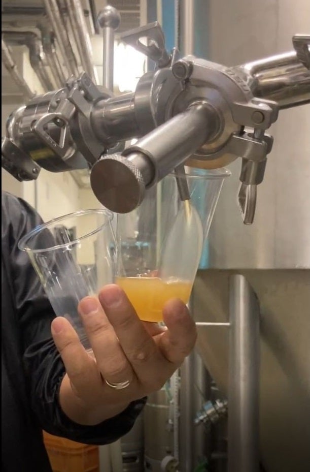 マッシュアウトや煮沸・スパージングなどいろいろな工程を得て完成した試作版のビール!