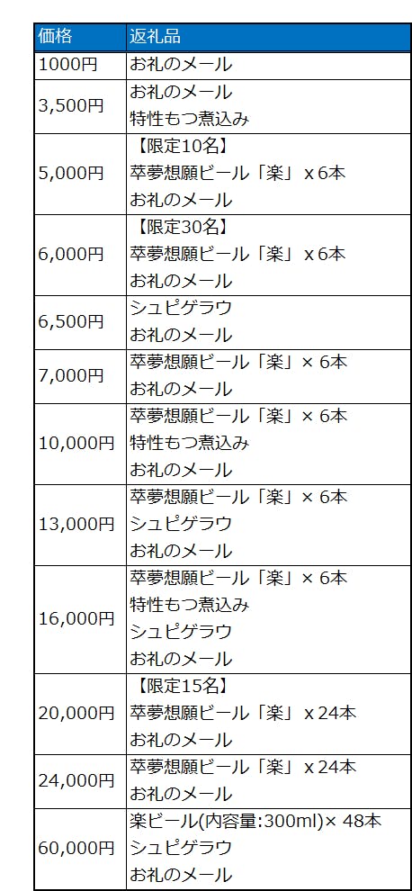 ビール製作費、グッズ費用、広告宣伝費用、返礼品の送料に充てさせていただきます。