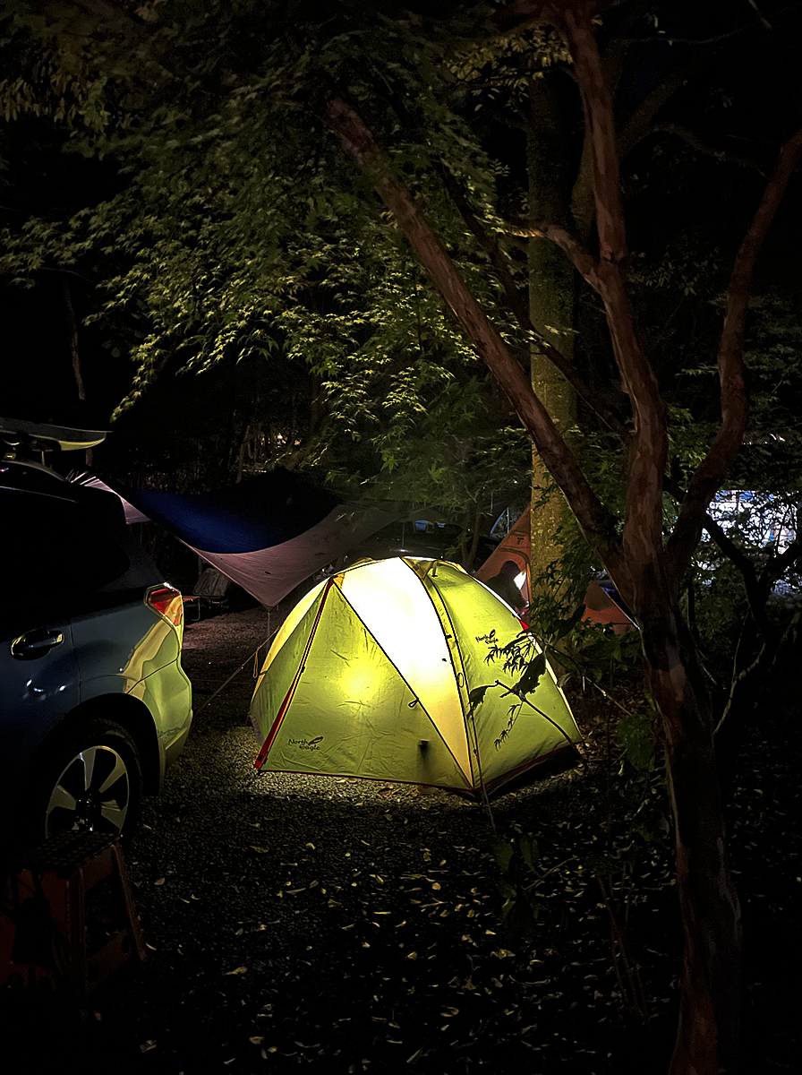 皆様こんにちは!hinataプロジェクトです。皆様からのご支援を頂きありがとうございます。hinataランタンプロジェクトメンバーがソロキャンプに新富士オートキャンプ場に訪問した時のテント情景です。写真ではかなり明るく写っていますが、最小光量です。就寝前のひと時にちょうど良い明るさです。テント屋根のセンターにDカンが付いていますので、付属のカラビナで吊り下げています。明るさ、使用感は個人的に試用していても満足ですので、この機会に皆様に是非使って頂きたいです。引き続きよろしくお願い致します。株式会社オウルテック