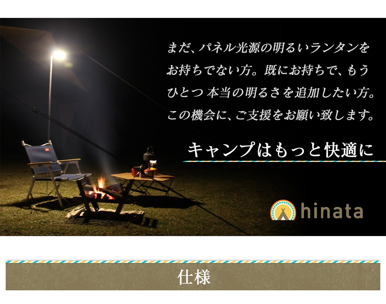 最後に、本製品を手に取った皆様に喜んでもうえるよう、 チームメンバー一同心を込めて対応していきますので、 hinataランタンの応援よろしくお願い致します。