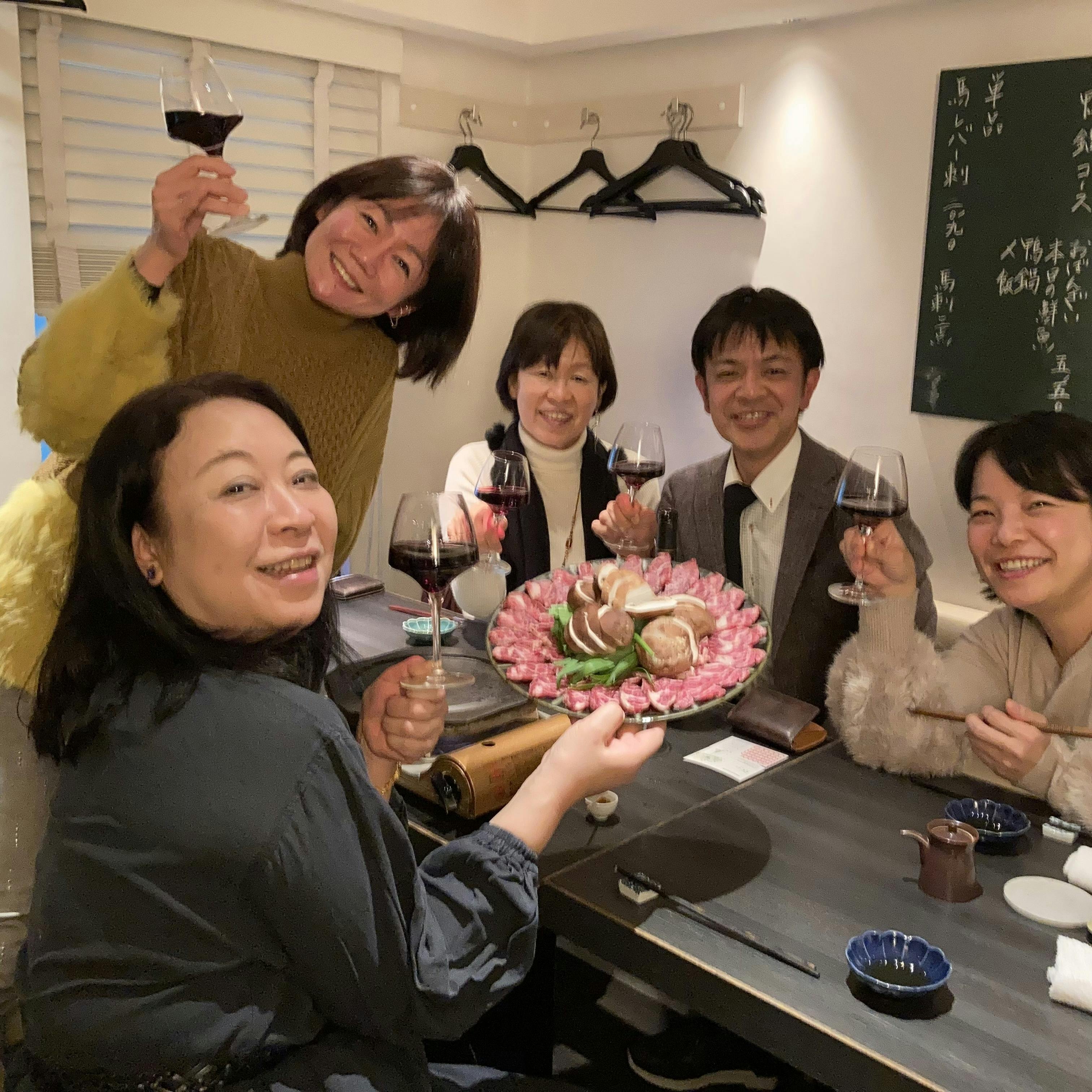 クラファンが開始した日、東京、目黒の馬肉料理店『水器』さんでワイン会を開催しました。水器一番人気メニュー、絶品の馬焼きコースと赤ワインのマリアージュに舌鼓をうちました。