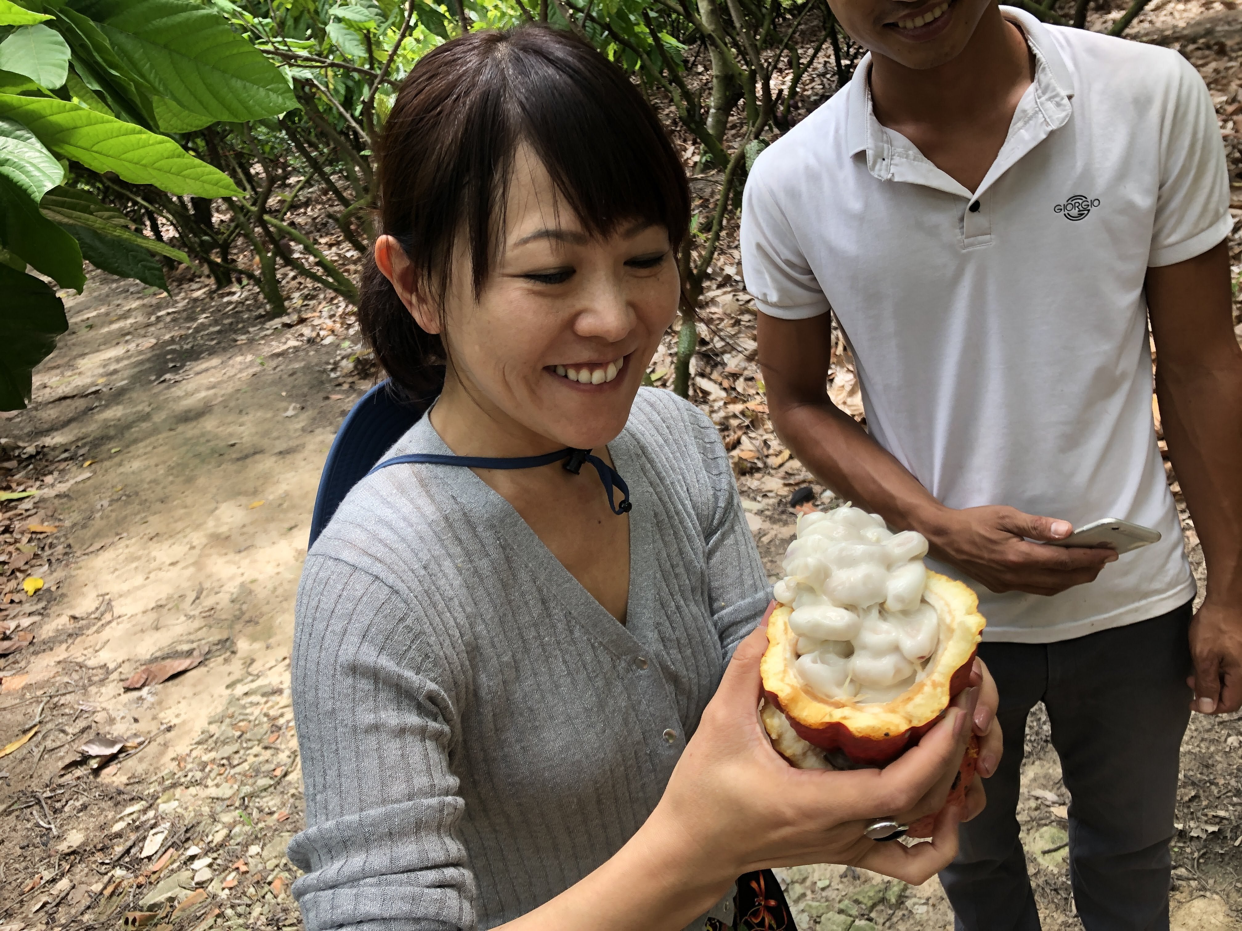 6年前、初めてカカオ農園に案内してもらった時、カカオ豆を覆う果肉(カカオパルプ)