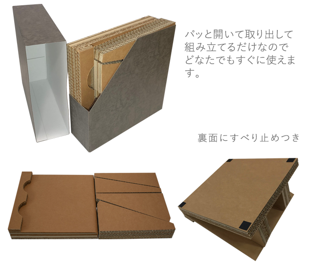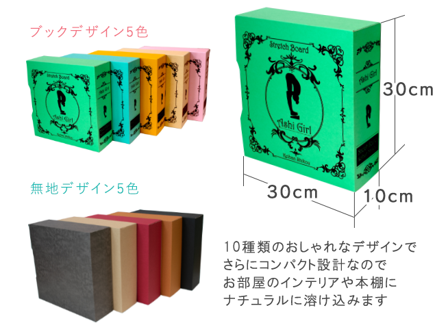外箱は、本棚においても馴染むパステル調の洋書柄タイプと、シンプルなお部屋にも合わせられるシックな無地タイプをご用意し、おしゃれに収納可能な仕様です。