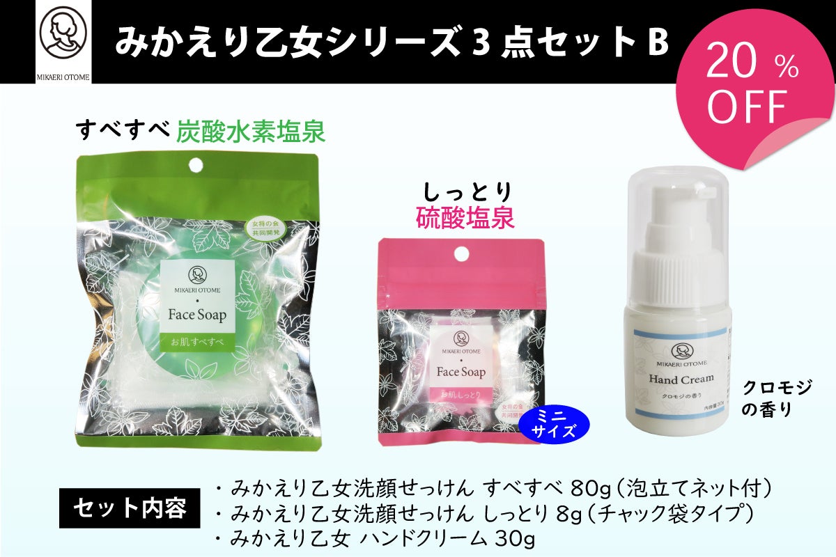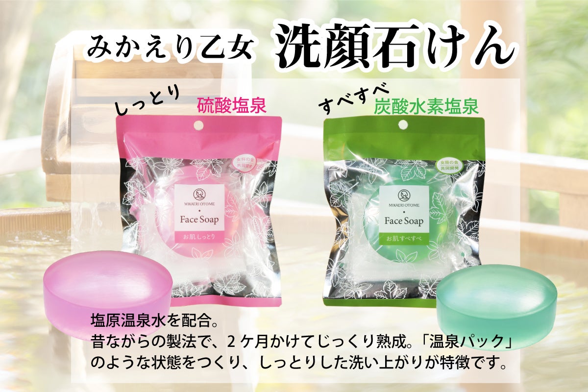 そして塩原温泉女将の会の協力・監修のもと、宿泊客の減少に悩む観光関連事業者の収入に貢献しながらも、地域のPR、温泉ファンのみなさまが自粛期間中にも塩原温泉を感じていただける商品「みかえり乙女洗顔石けん」が誕生しました。