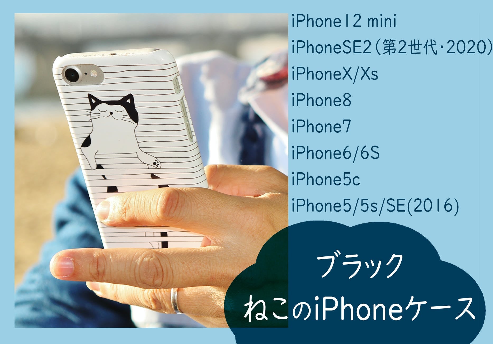 iPhone12 mini、 iPhoneSE2(第2世代・2020)、 iPhoneX/Xs、 iPhone8、iPhone7、iPhone6/6S、 iPhone5c、 iPhone5/5s/SE(2016)