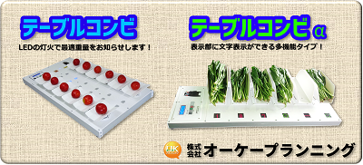 弊社では野菜の計量に特化したハカリ「テーブルコンビ」を製造販売しています。