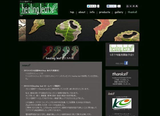 お陰様で、healing leafの専用ホームページを開設いたしました。