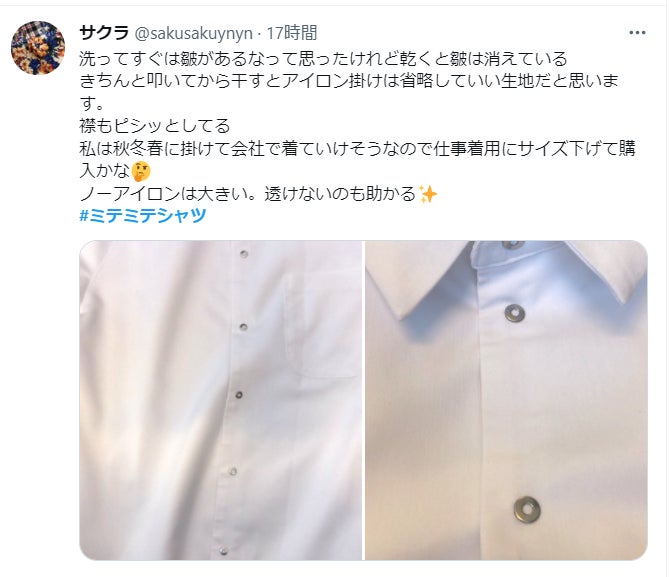 その他にも、事前にお試しいただいた方の感想がtwitterに投稿されています。【#ミテミテシャツ】で検索して確認してみてください!