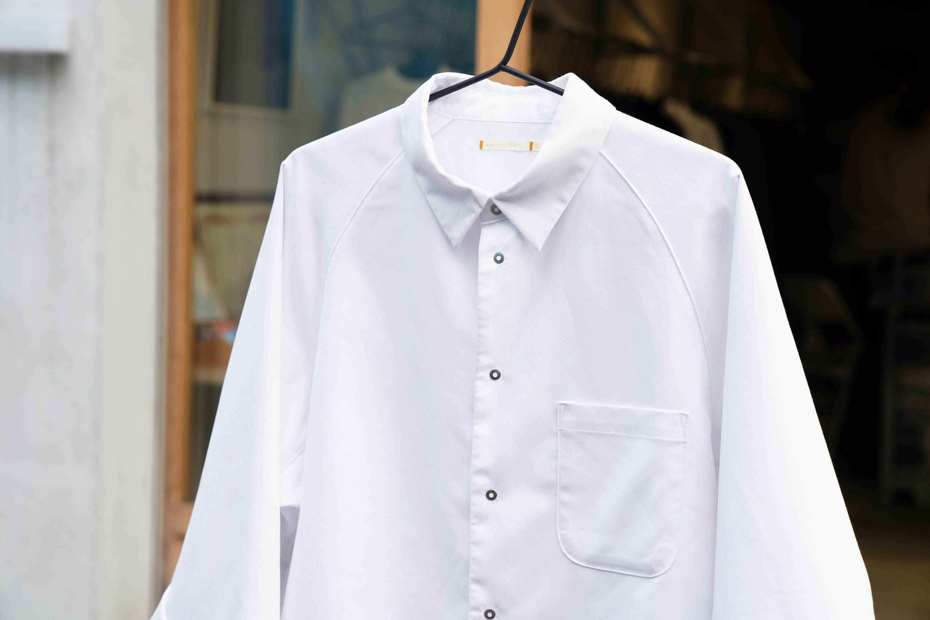 白シャツがもともと持っている、年齢や性別、着るシーンを問わない懐の深さを活かし、さらにニュートラルな雰囲気になるように形にこだわりました。余白のあるデザインなので、ジャストサイズでもオーバーサイズでも、あなたの好みや着る場面に合わせて、選んでいただけたら嬉しいです。