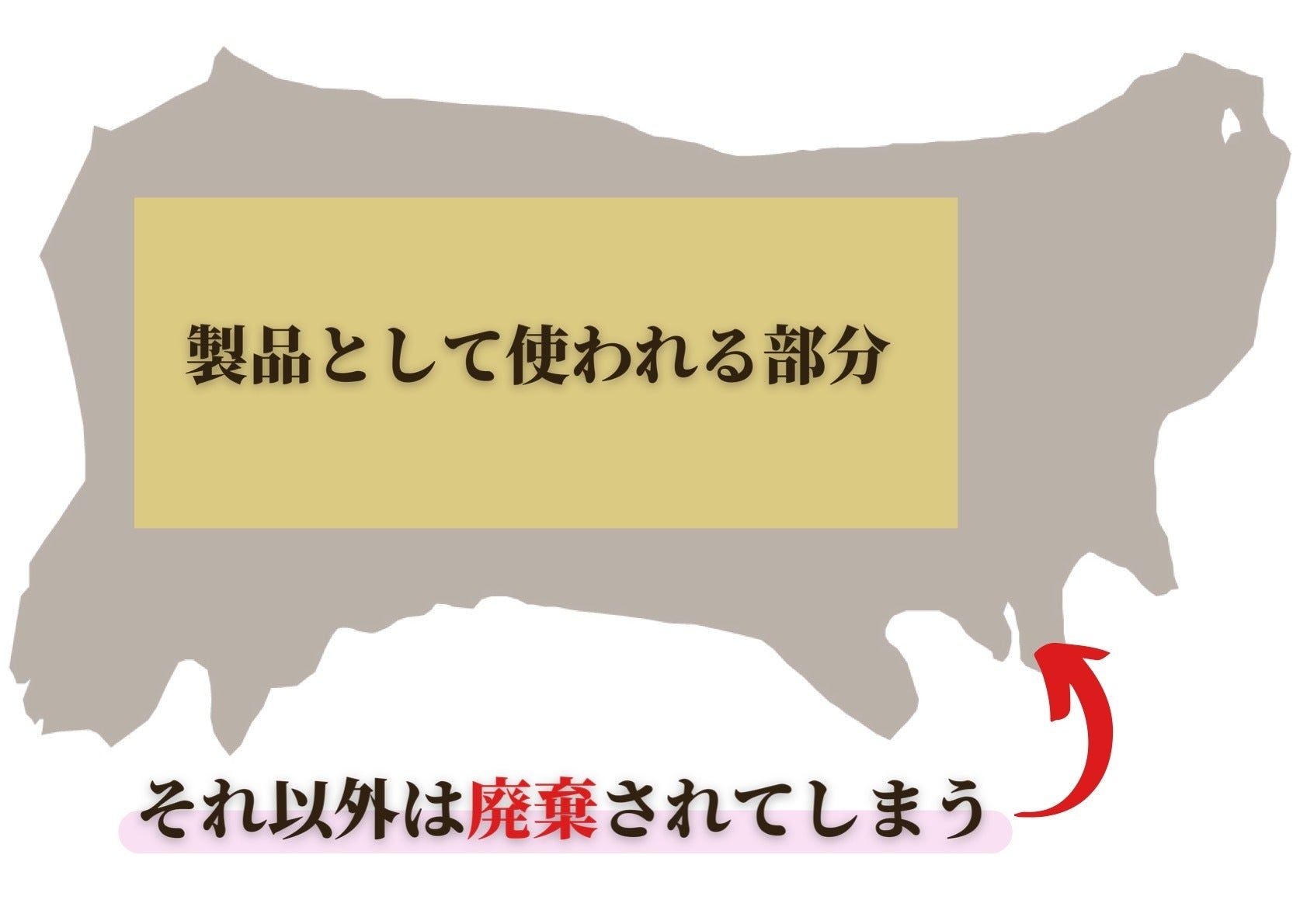 そのため、既製品の生産現場ではあらかじめ、傷が多い皮革や製造会社での基準に満たないものは、製品になることなく処分されてしまいます。