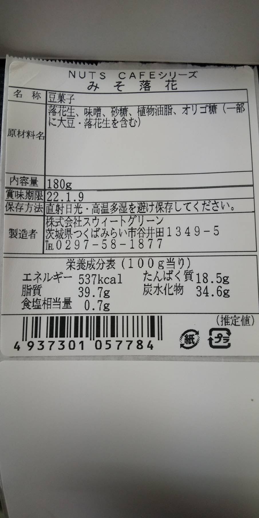 ・スウィートグリーン 味噌バター落花