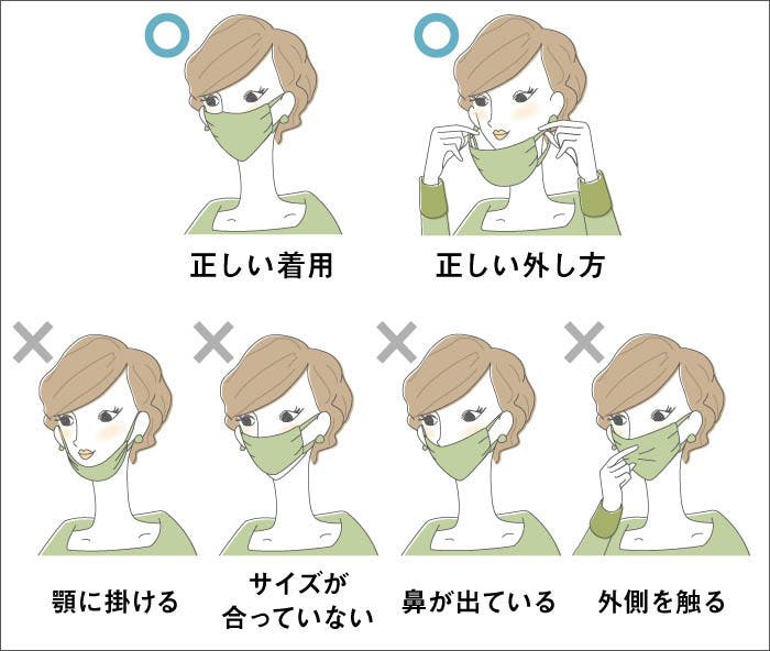 感染予防の効果を高めるには正しいマスクの着脱方法を知ることが大切です。