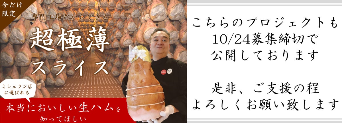 倉庫に眠たったままの生ハムを廃棄することなく、皆様においしく召し上がっていただきたく、本プロジェクトを立ち上げました。