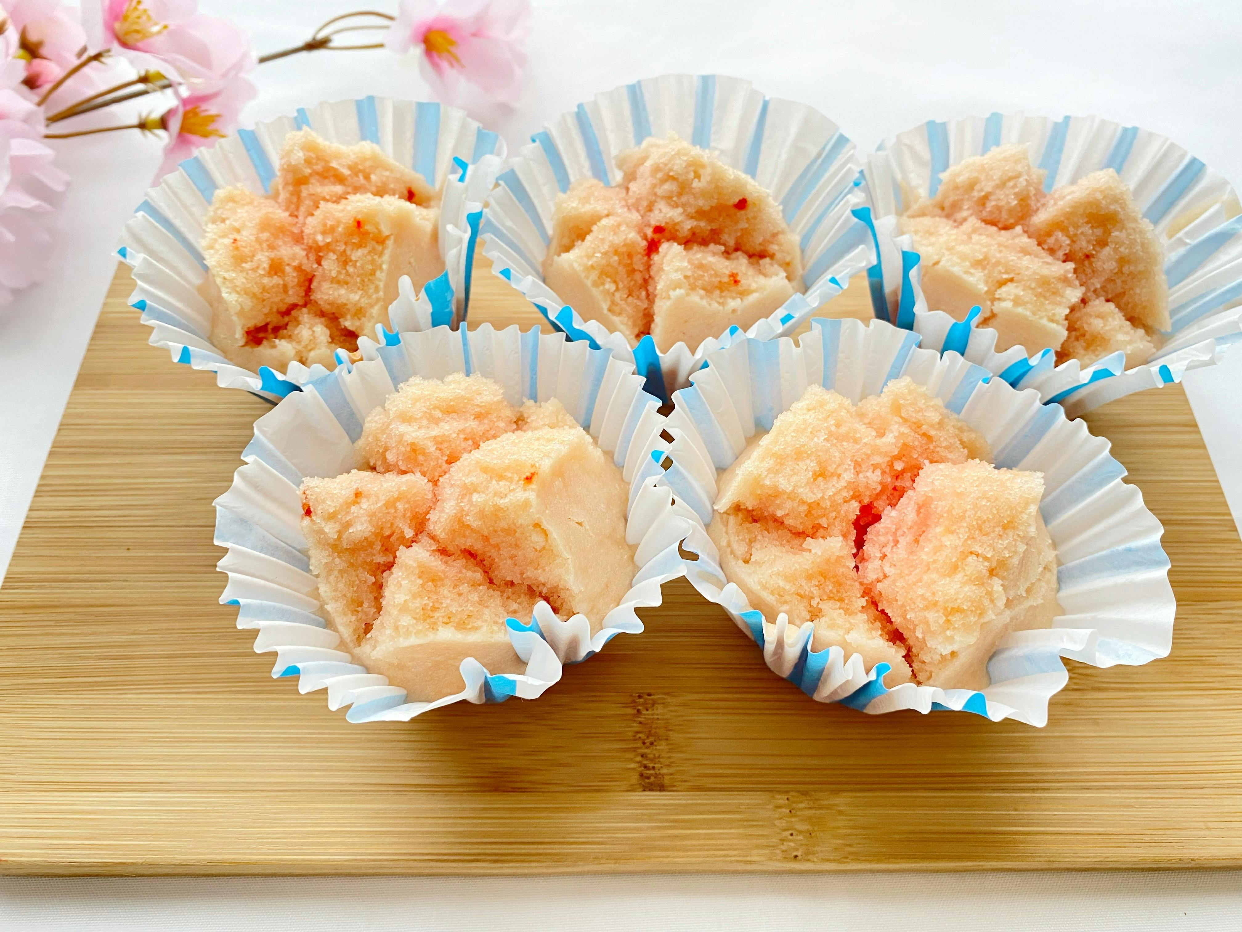 一つはピンク色の米粉蒸しパン。