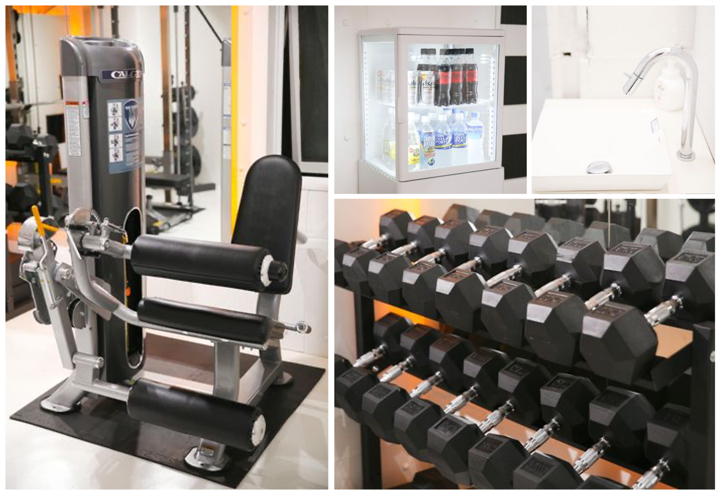 トレーニング設備は、レンタルジムでは考えられないTUFFSTUFF社製の本格的マシーン。そのほかにも、冷蔵庫、Wi-Fi、テレビモニターといった設備を完備しています。