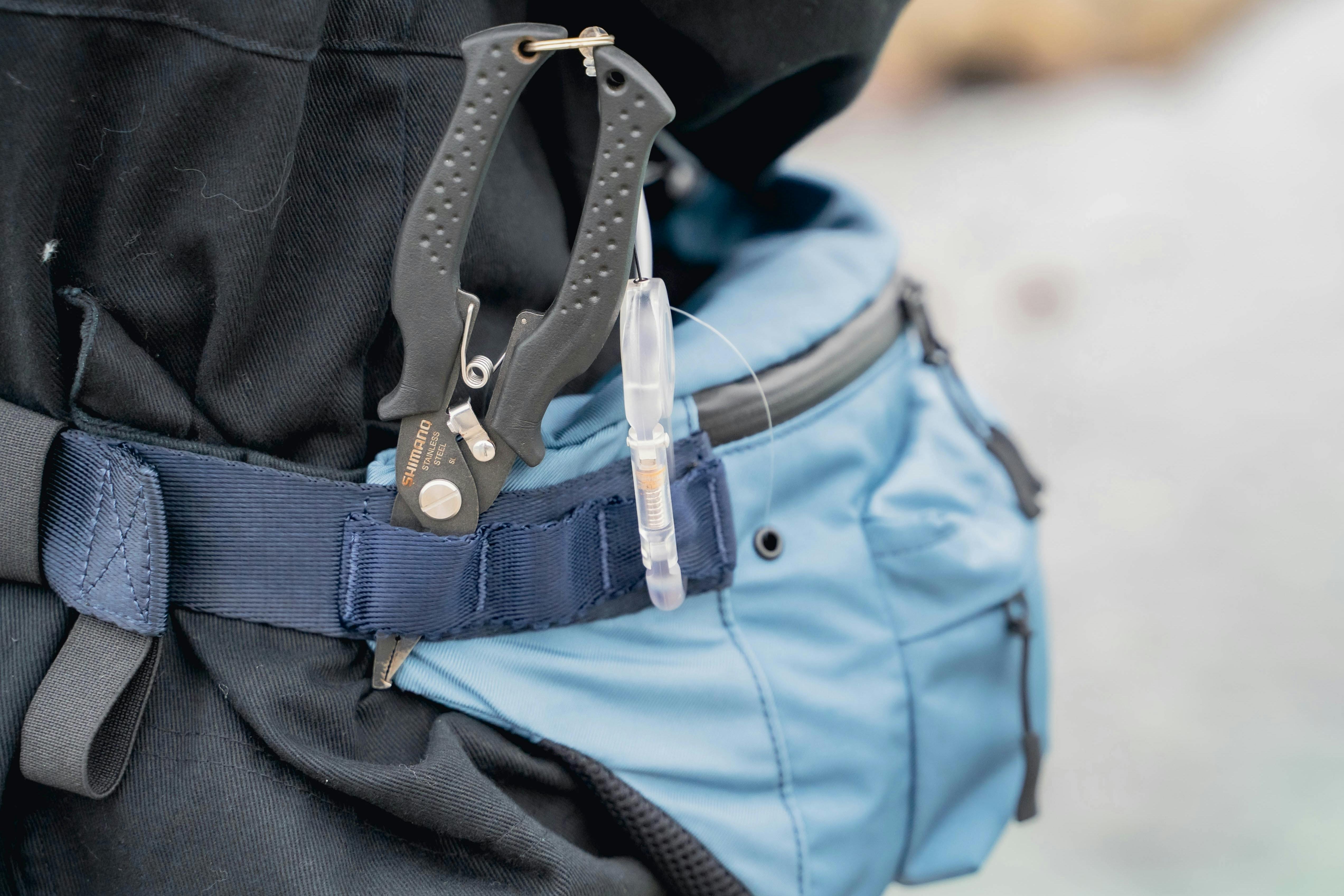 ◆釣り使い:カラビナと絡めてプライヤーやチョッパーなどを引掛けられる両サイドにあるテープベルト