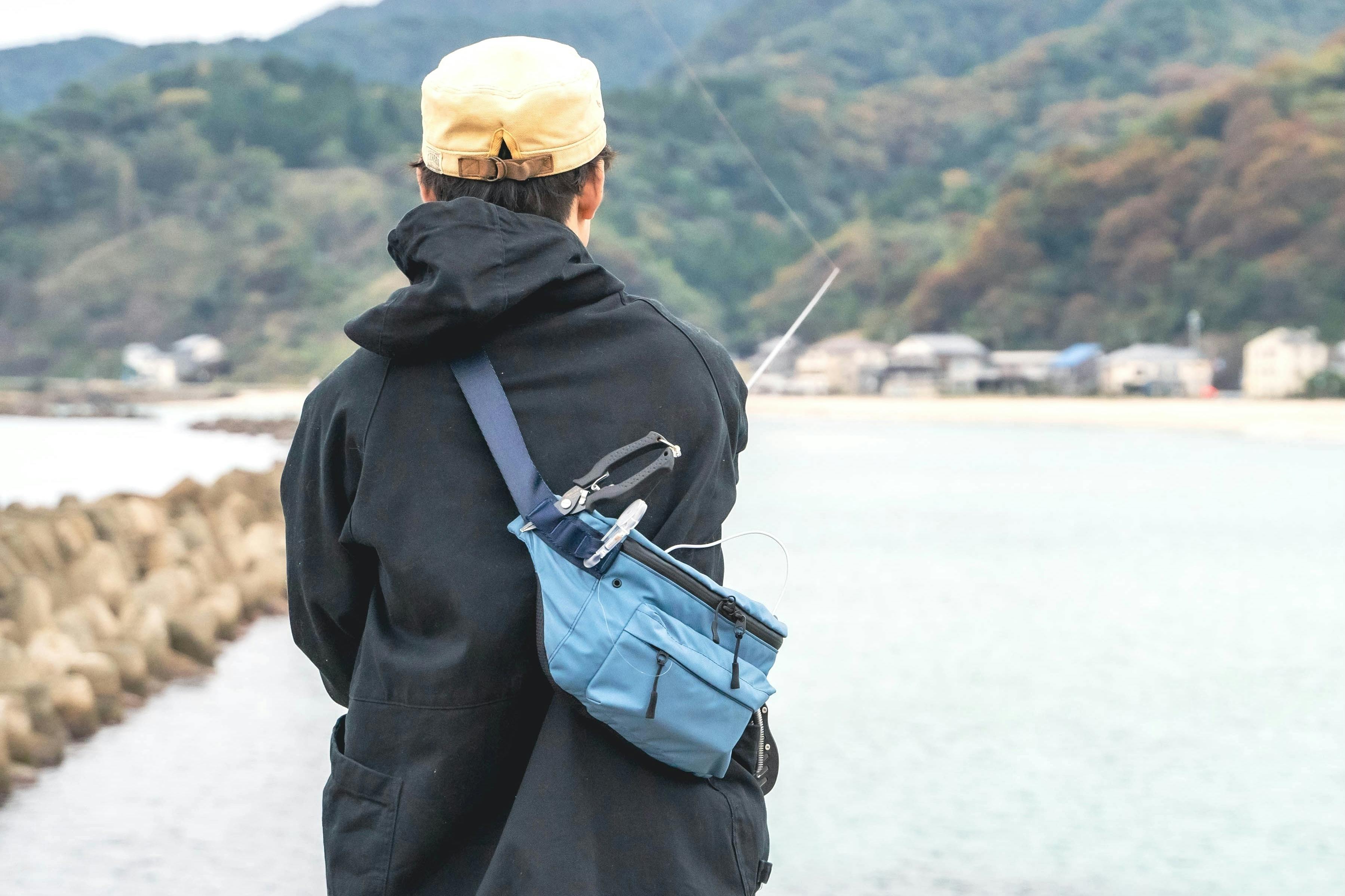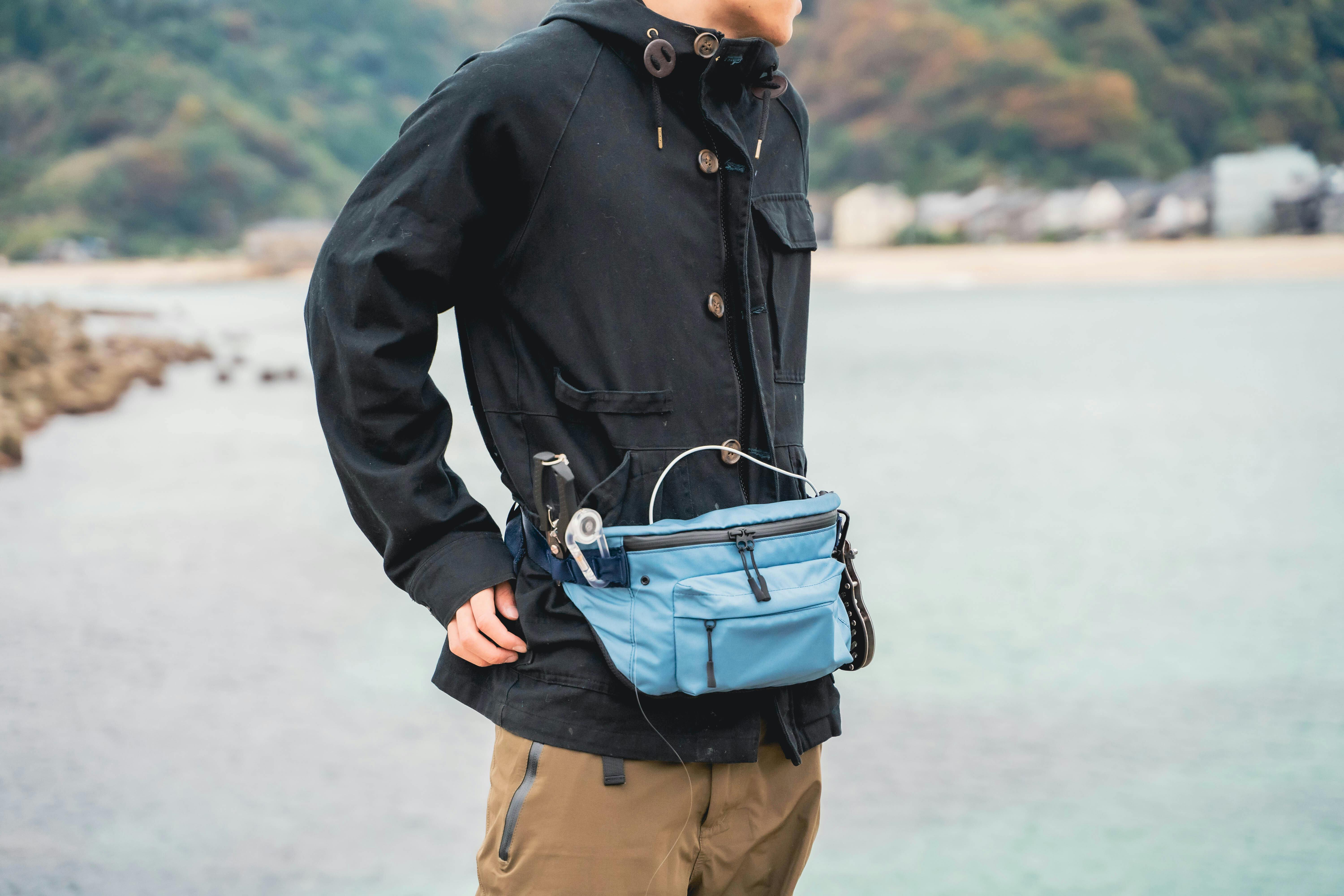 街にお出かけの際には斜め掛けショルダーとして、釣りの時はウエストバッグとして持っていただくのが便利です。