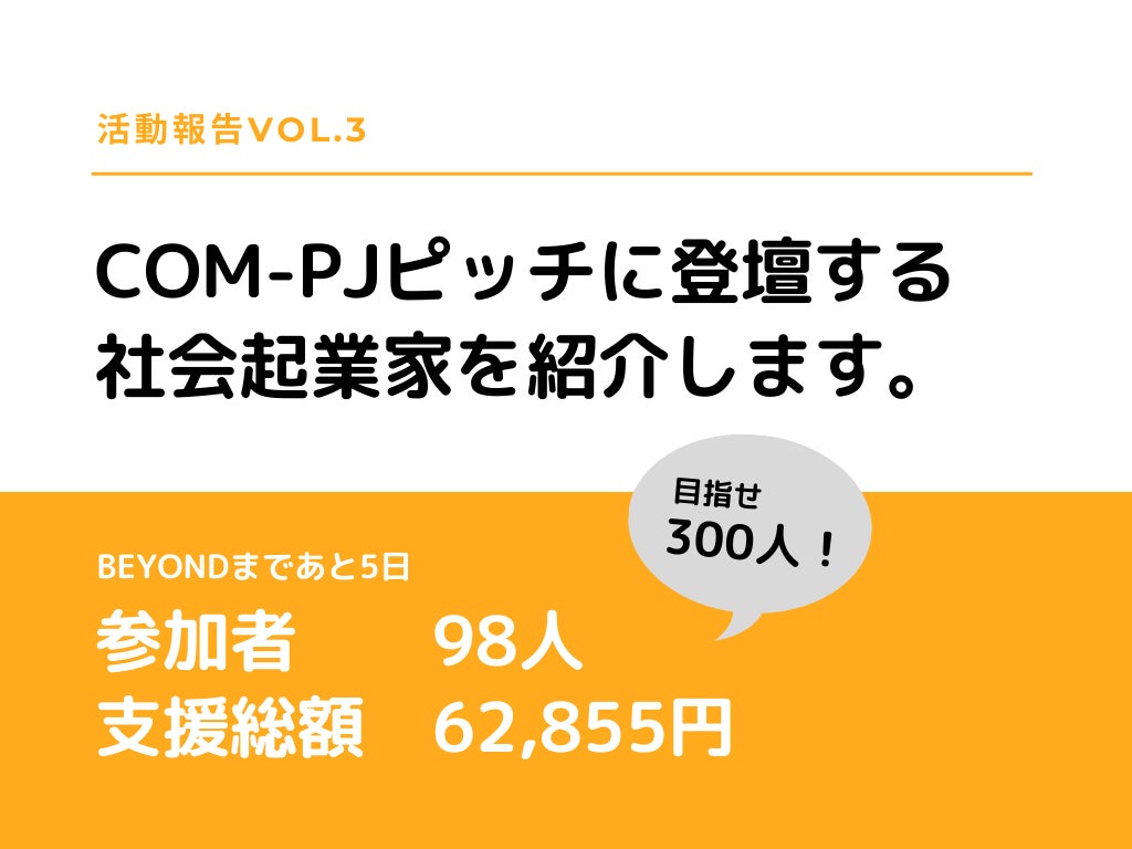 今回のメインコンテンツともなる社会起業家による「COM-PJ」(通称「コンプロ」)ピッチ。
