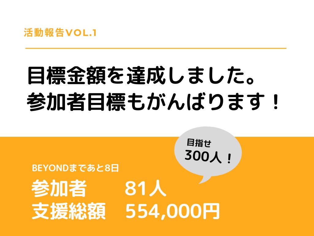 毎日ご支援してくださった方のコメントを読んで励まされています。BEYONDでお返しができるようチーム一同全力でがんばっていきますので、引き続きどうぞよろしくお願いいたします!