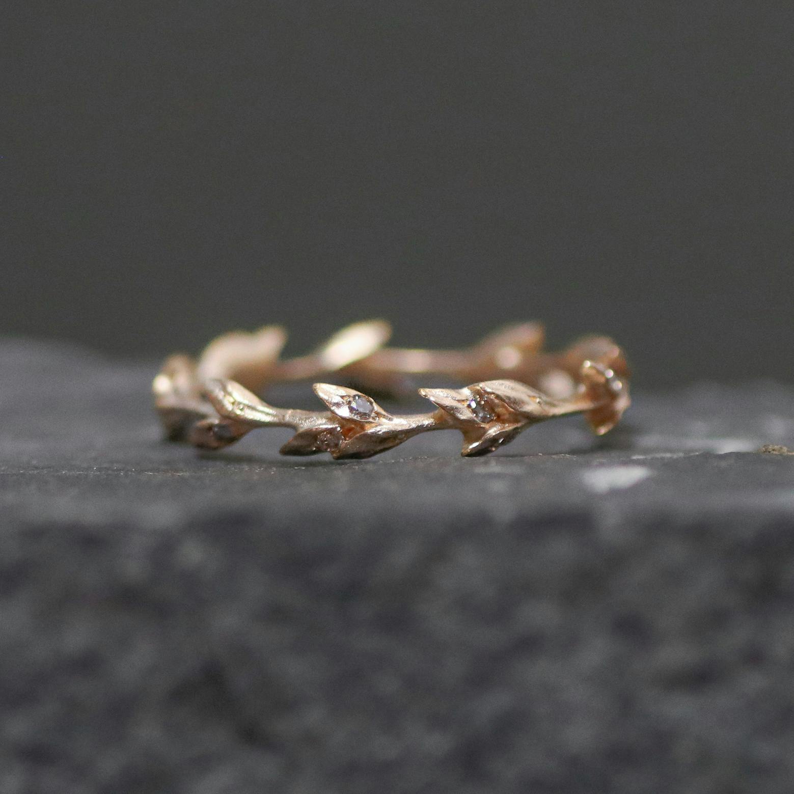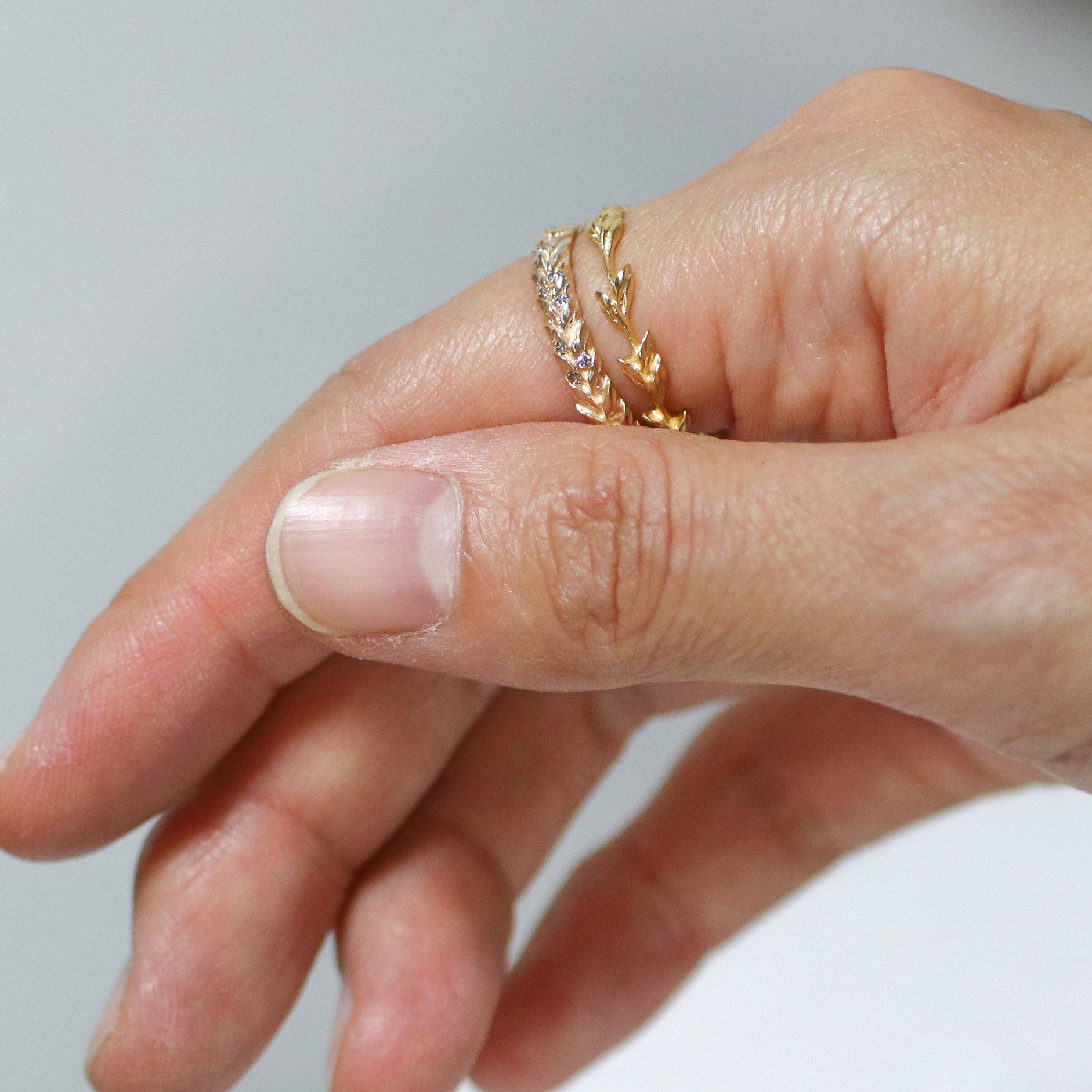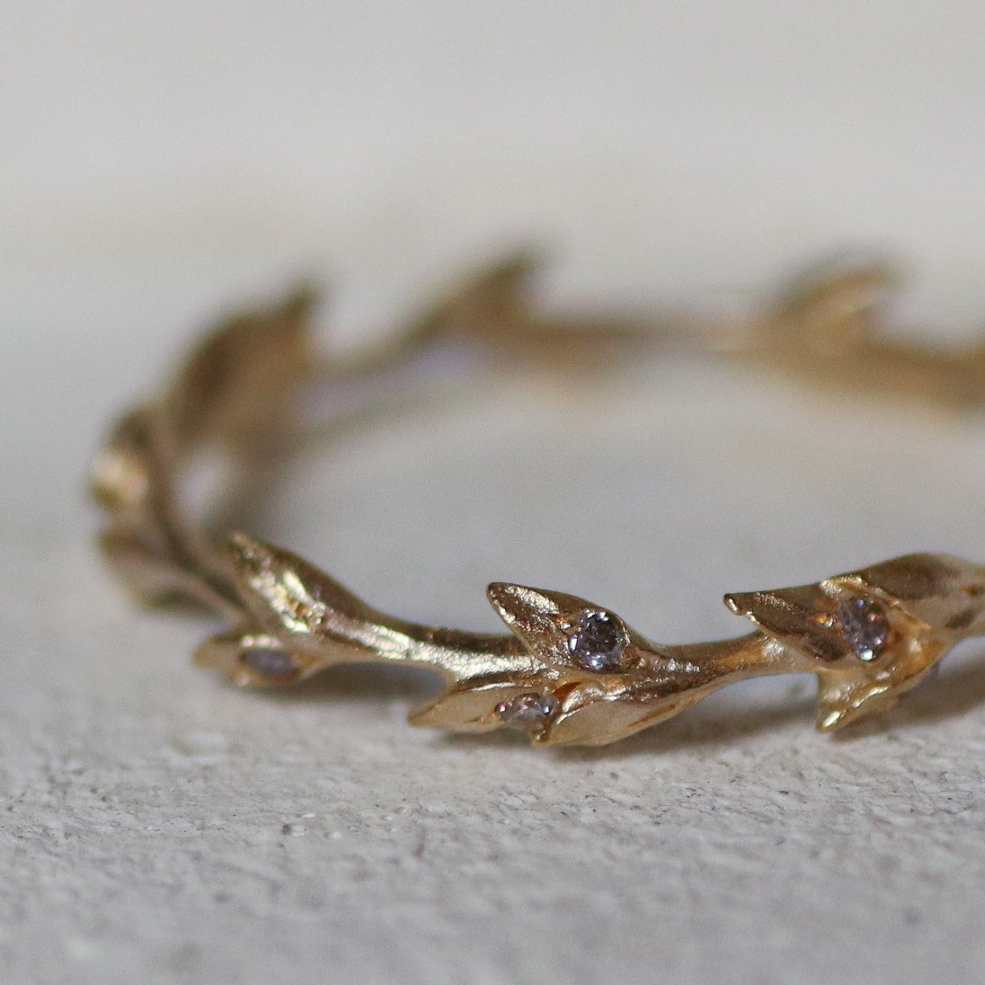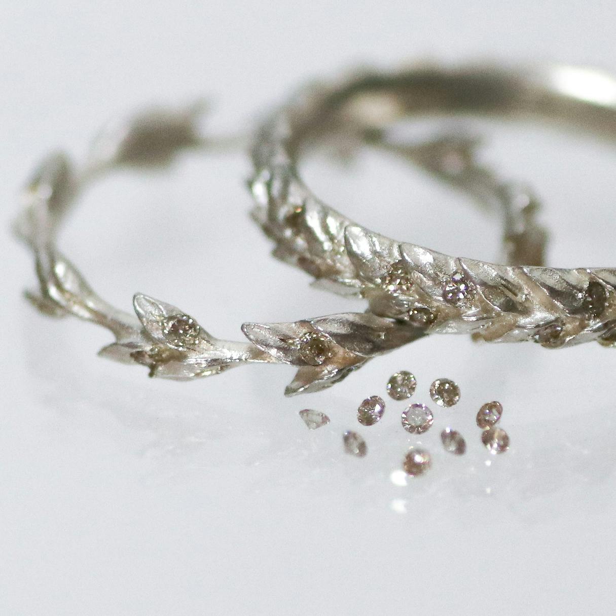 ブラウンダイヤの入るシリーズでは、ダイヤの入る葉と無垢の葉がランダムに入り