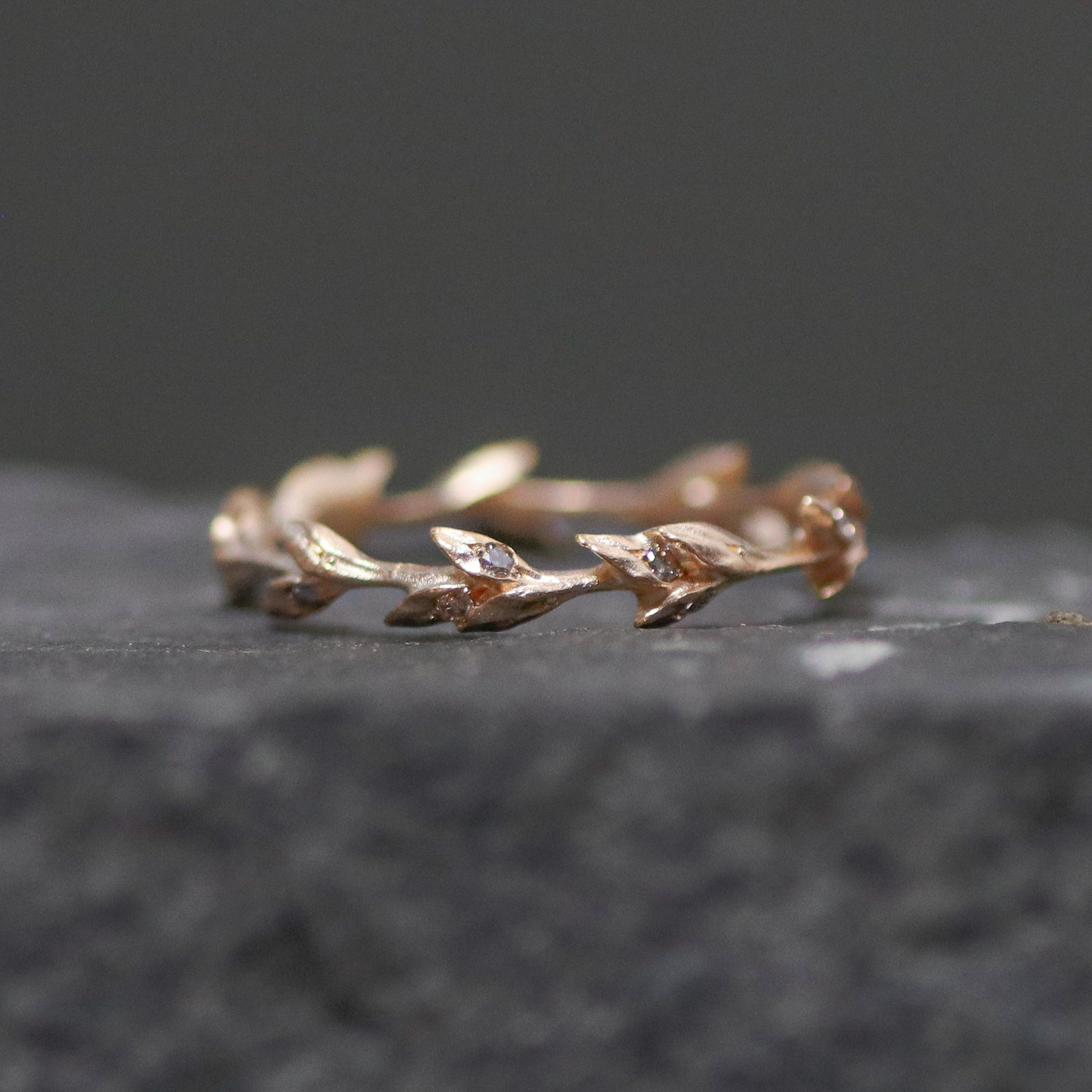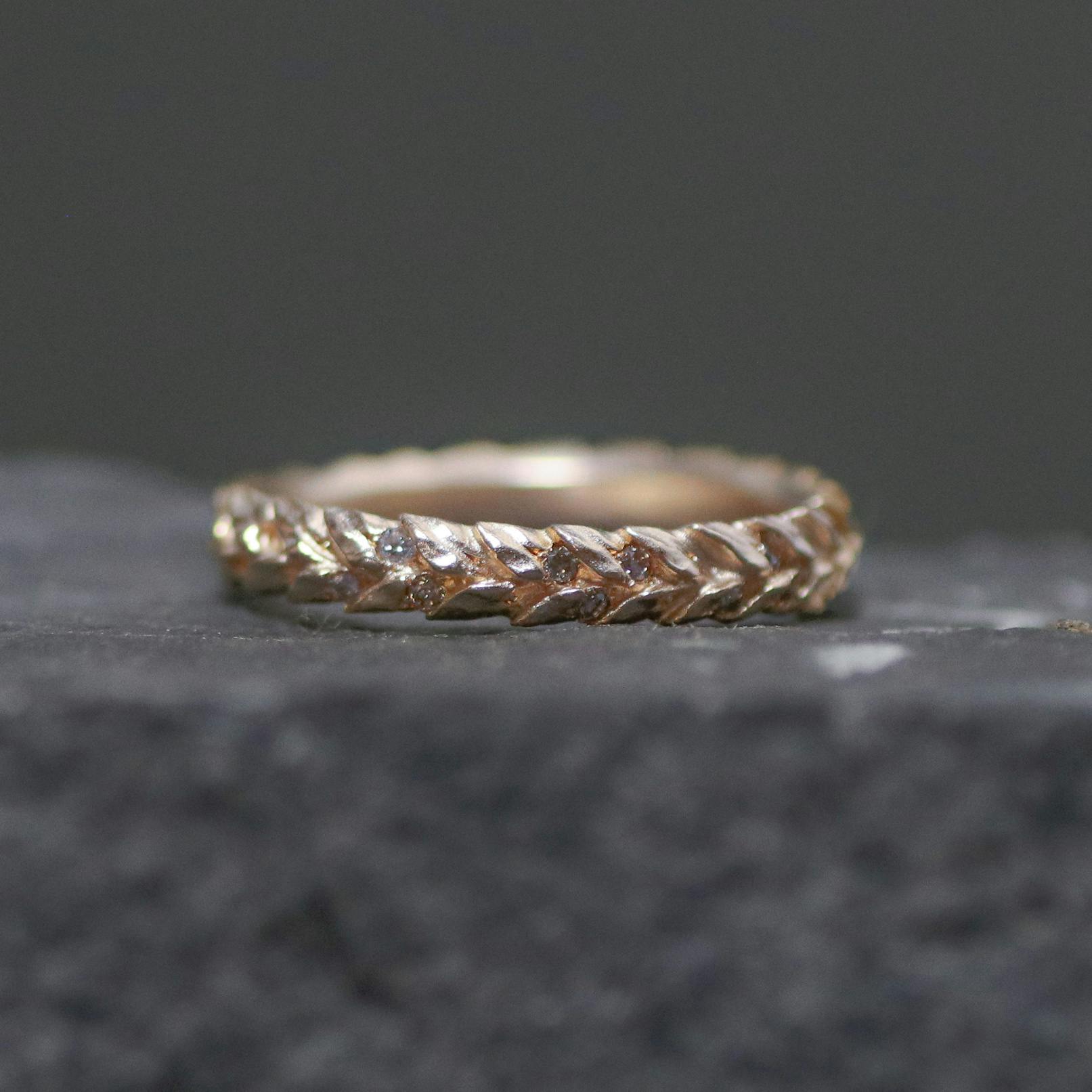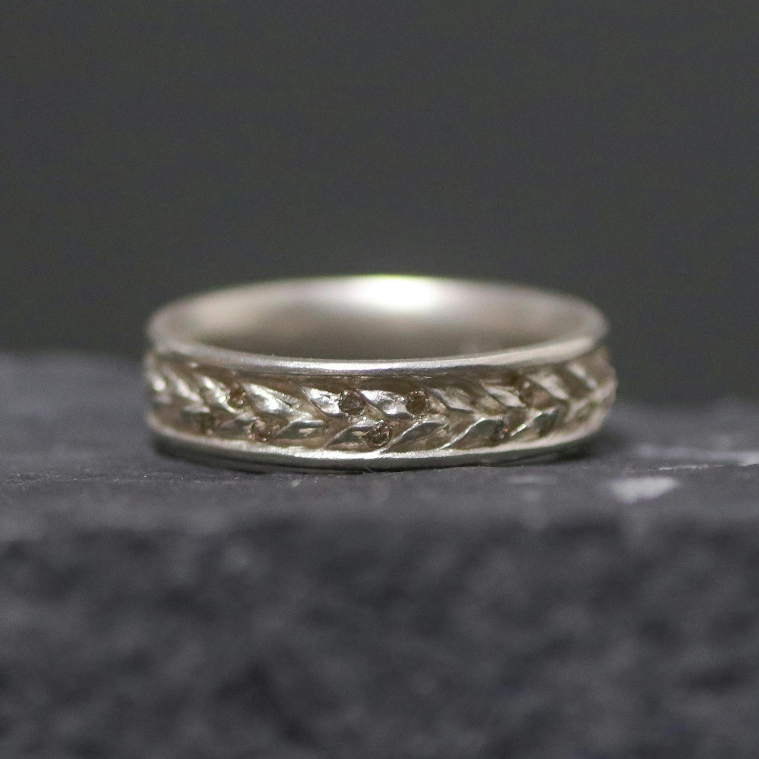 ブラウンダイヤの入るシリーズでは、ダイヤの入る葉と無垢の葉がランダムに入り