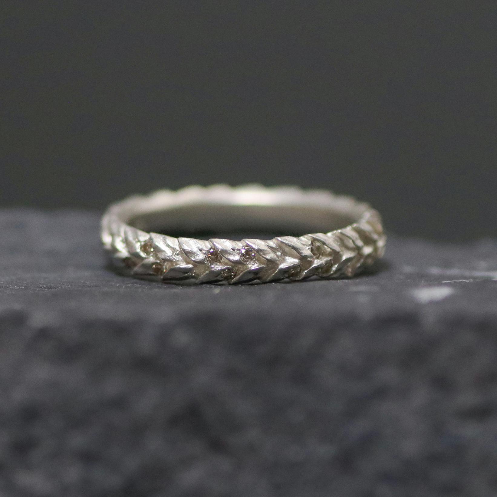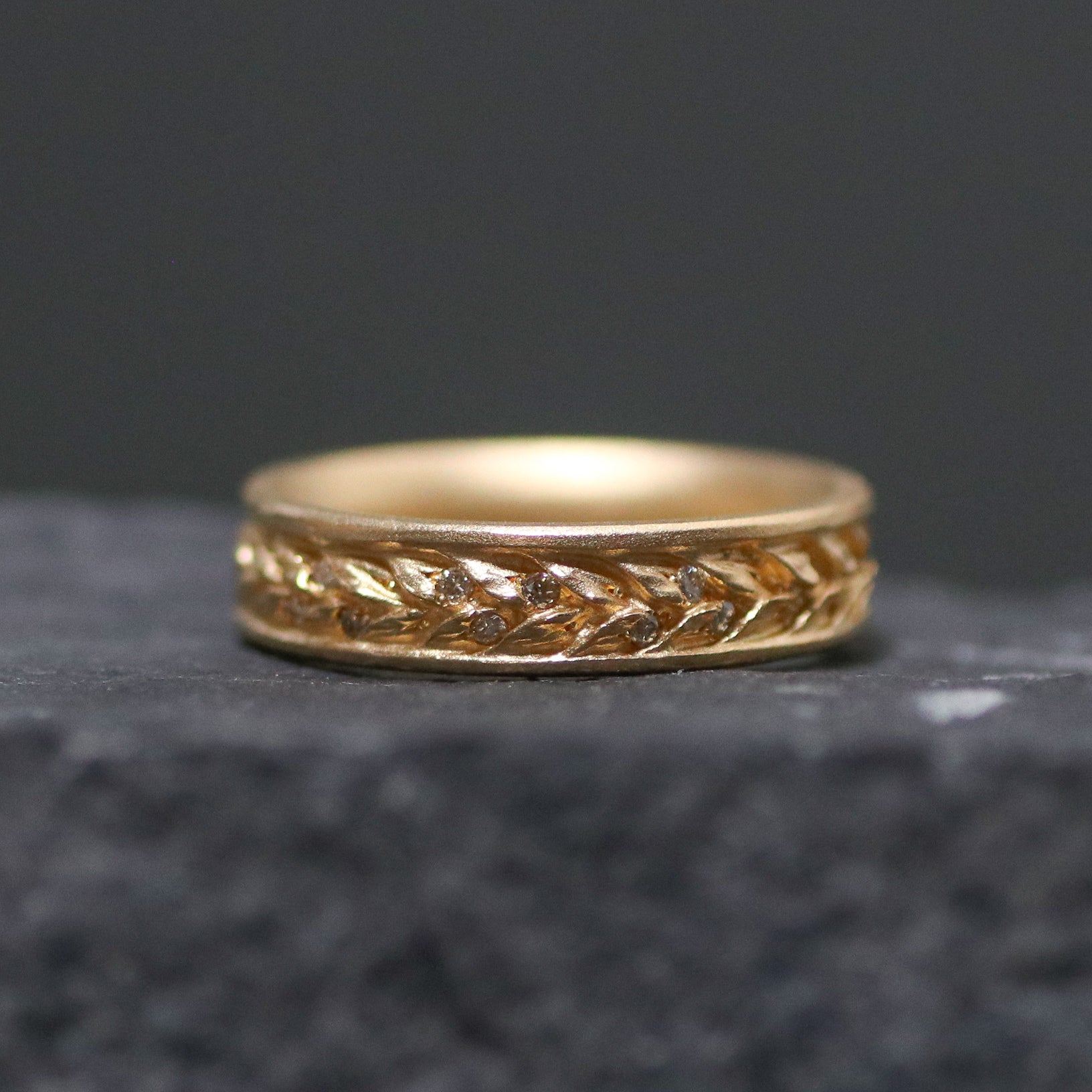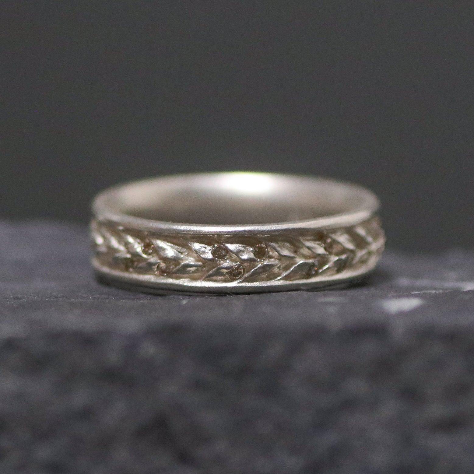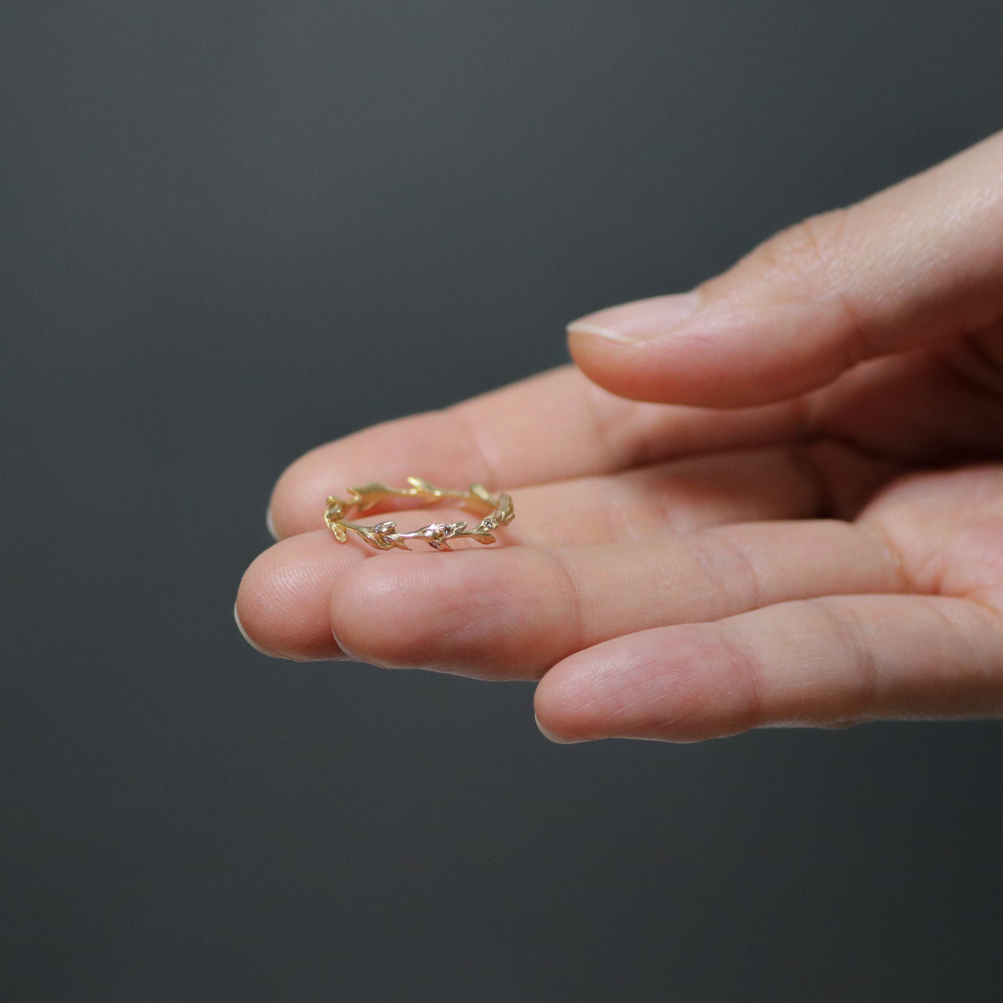 ブラウンダイヤの入るシリーズでは、ダイヤの入る葉と無垢の葉がランダムに入り