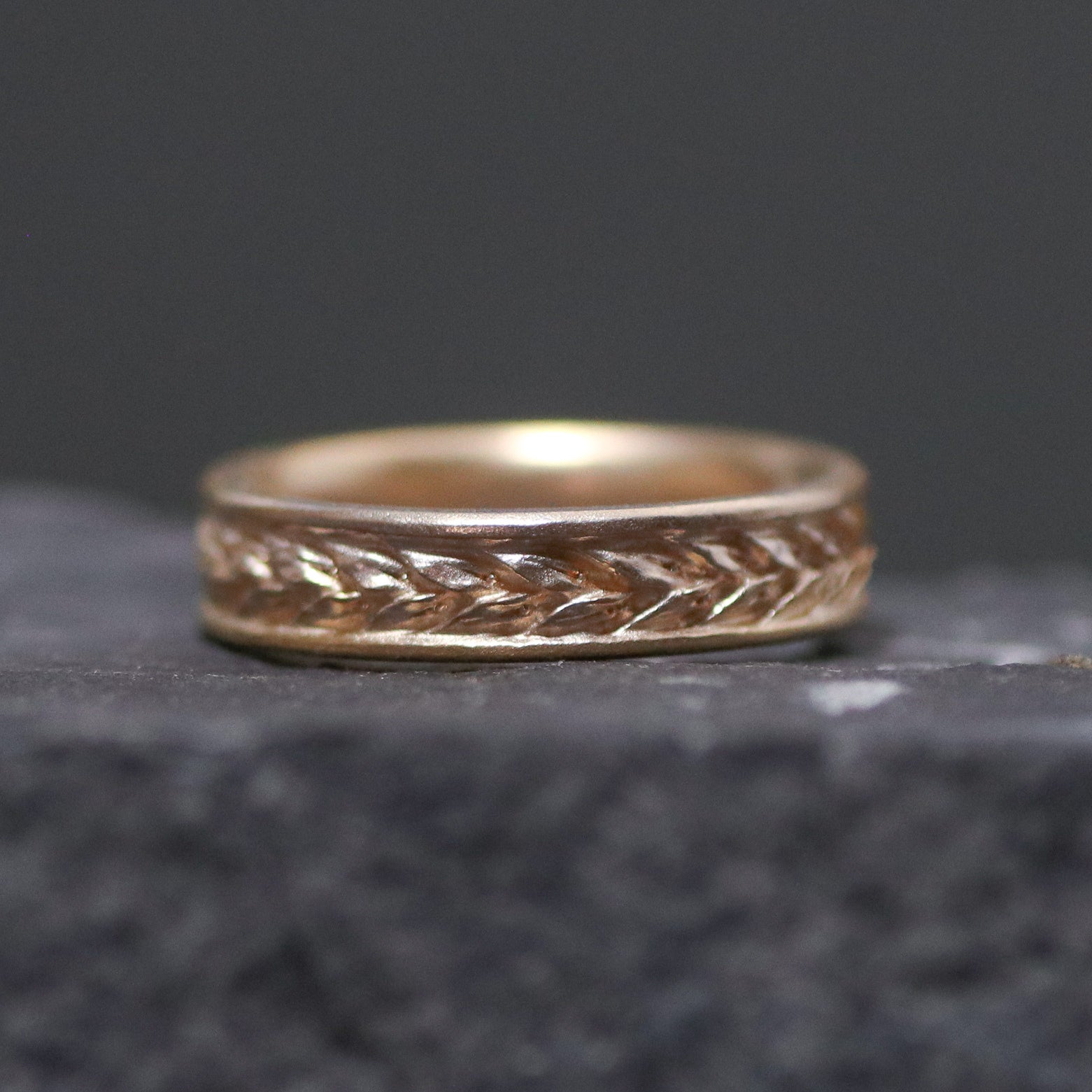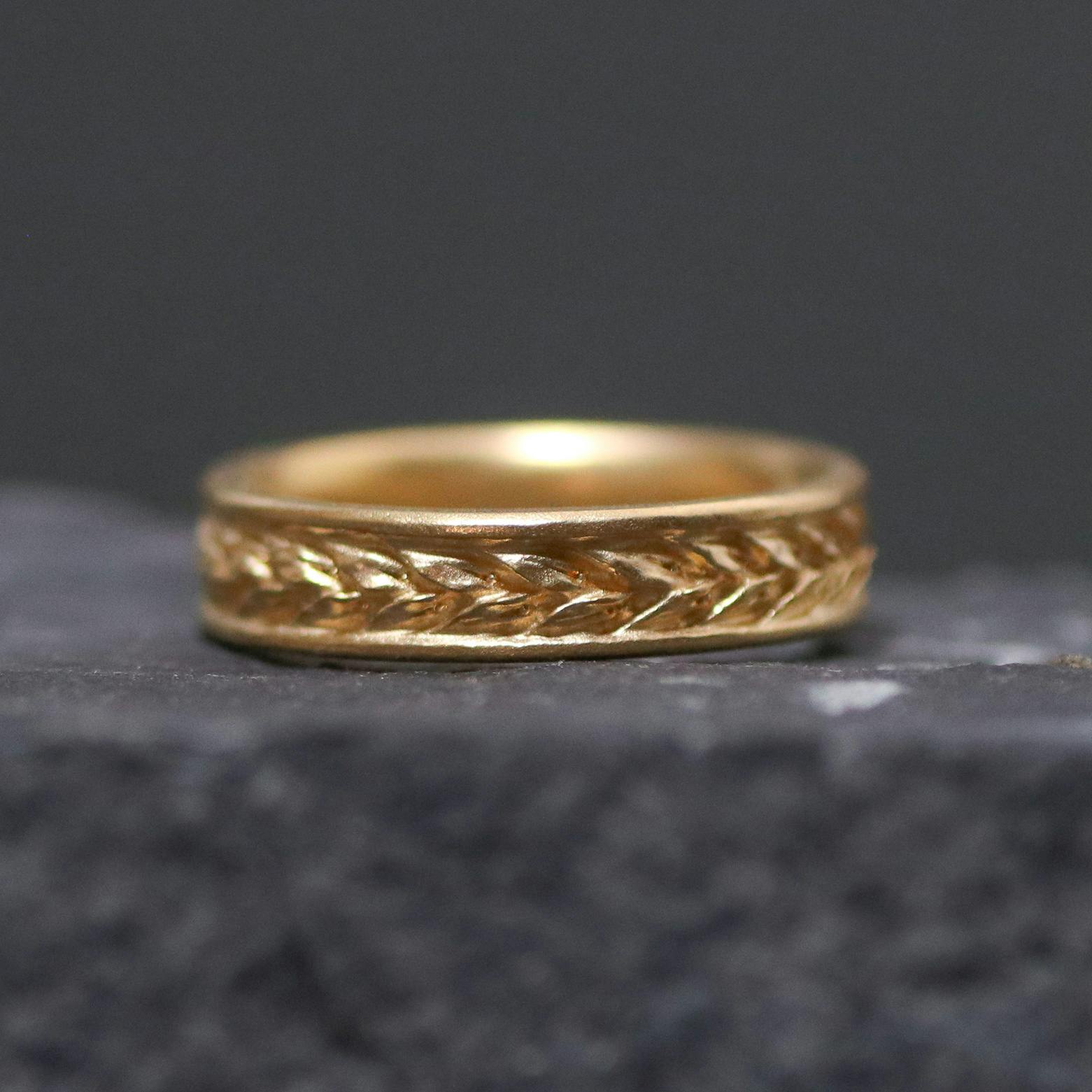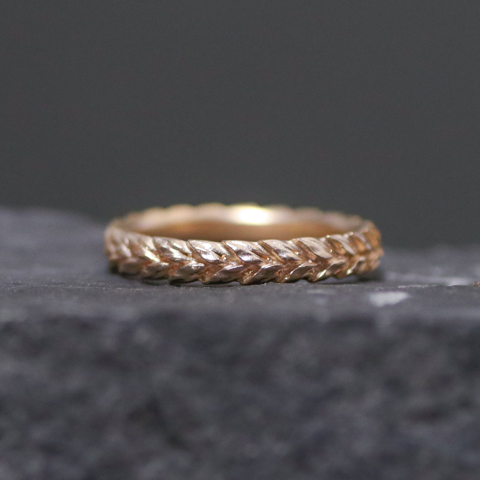 無垢の葉には1枚1枚に洋彫りでラインを彫り、付け根にはミル打ち(丸飾り)を