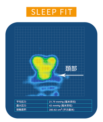 メーカーにて測定した結果、FITPILLOWを使用することで、首から頭部の最大圧力が144mmHgから42mmHgに軽減することができました。約71%の減圧が期待できます。