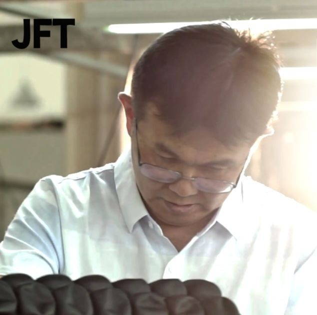 JFT社の社長ジャック・ツァイさんは、台湾出身の職人で、旅行の時にリュックの重さを軽減する方法を研究することをきっかけに、エアセルを利用した肩パッドのアイデアを思いつき、クッション、肩パッドなどエアセル機能を生かした商品開発を行ってきました。