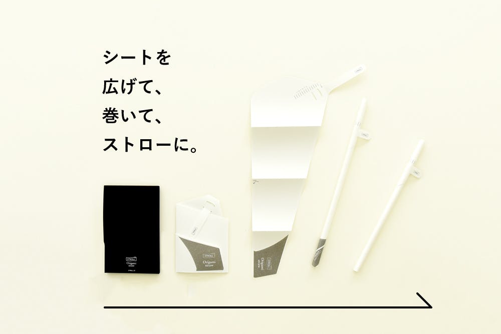 新アイテム「Origami straw」は、ケースから折り紙のように折りたたまれたシートを取り出して、広げて、巻いてストローにする、携帯性に優れたシート製ストローです。