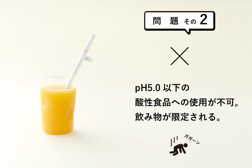 どの飲み物のpHが幾つなのかということを都度調べながら使用することは現実的ではないため、「Origami straw」は、水、コーヒー、お茶、牛乳専用となっています。