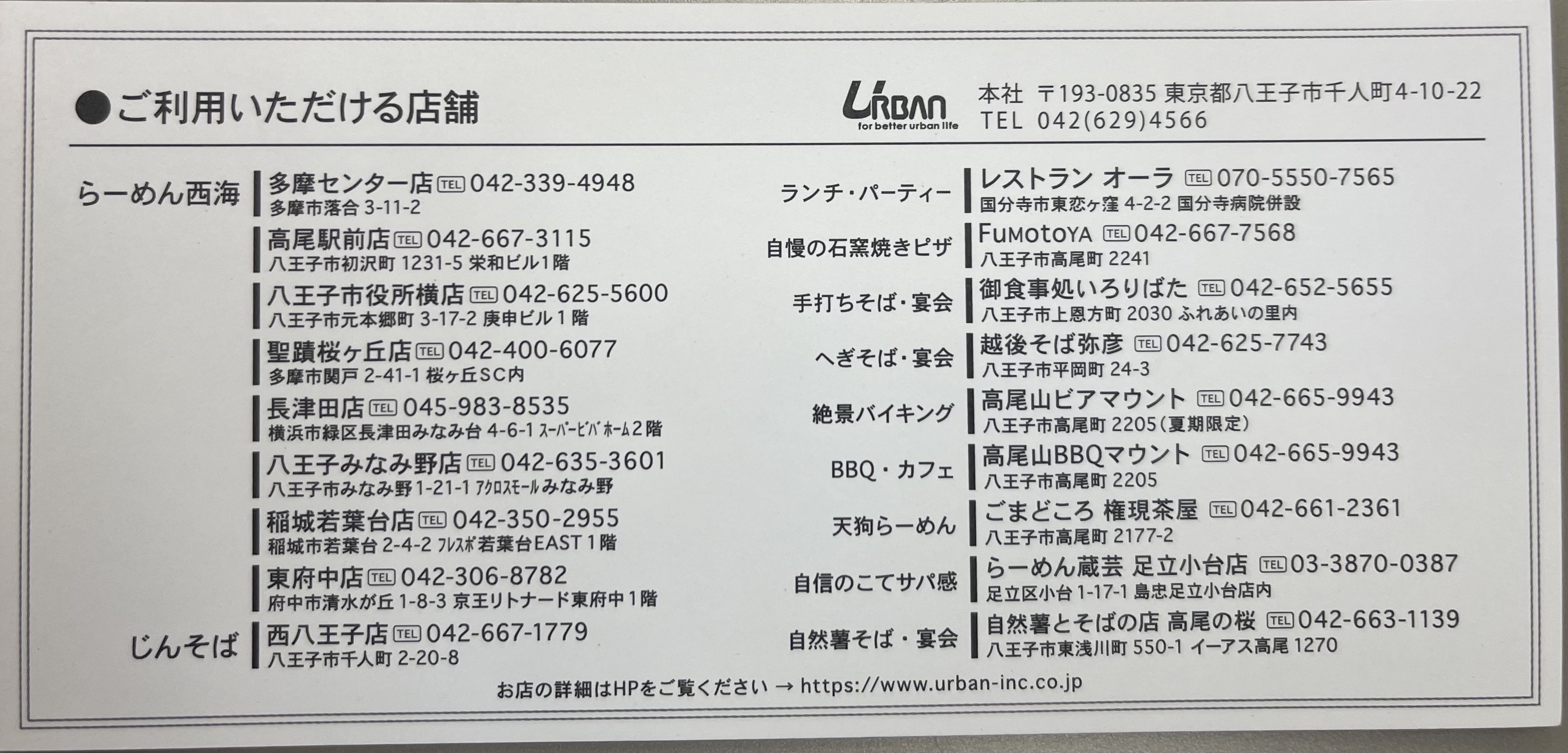 【レストランオーラ】【FumotoYA】【お食事処いろりばた】【越後そば弥彦】【高尾山ビアマウント】【高尾山BBQマウント】【こまどころ権現茶屋】【らーめん蔵芸足立小台店】【自然薯とそばの店高尾の桜】
