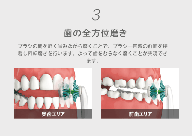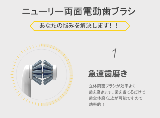 - 忙しいあなたへ!新発想ブラシヘッドで歯磨きの時間が軽減できます。