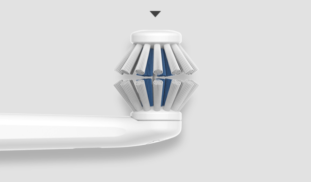 外輪ブラシは歯の内側と外側を、内輪ブラシは咬合面を一度にブラッシングします。歯の表面だけでなく、歯の隙間や凹凸に毛先が入り込み、歯垢を効果的に除去し、健康的な口内環境をサポートします。