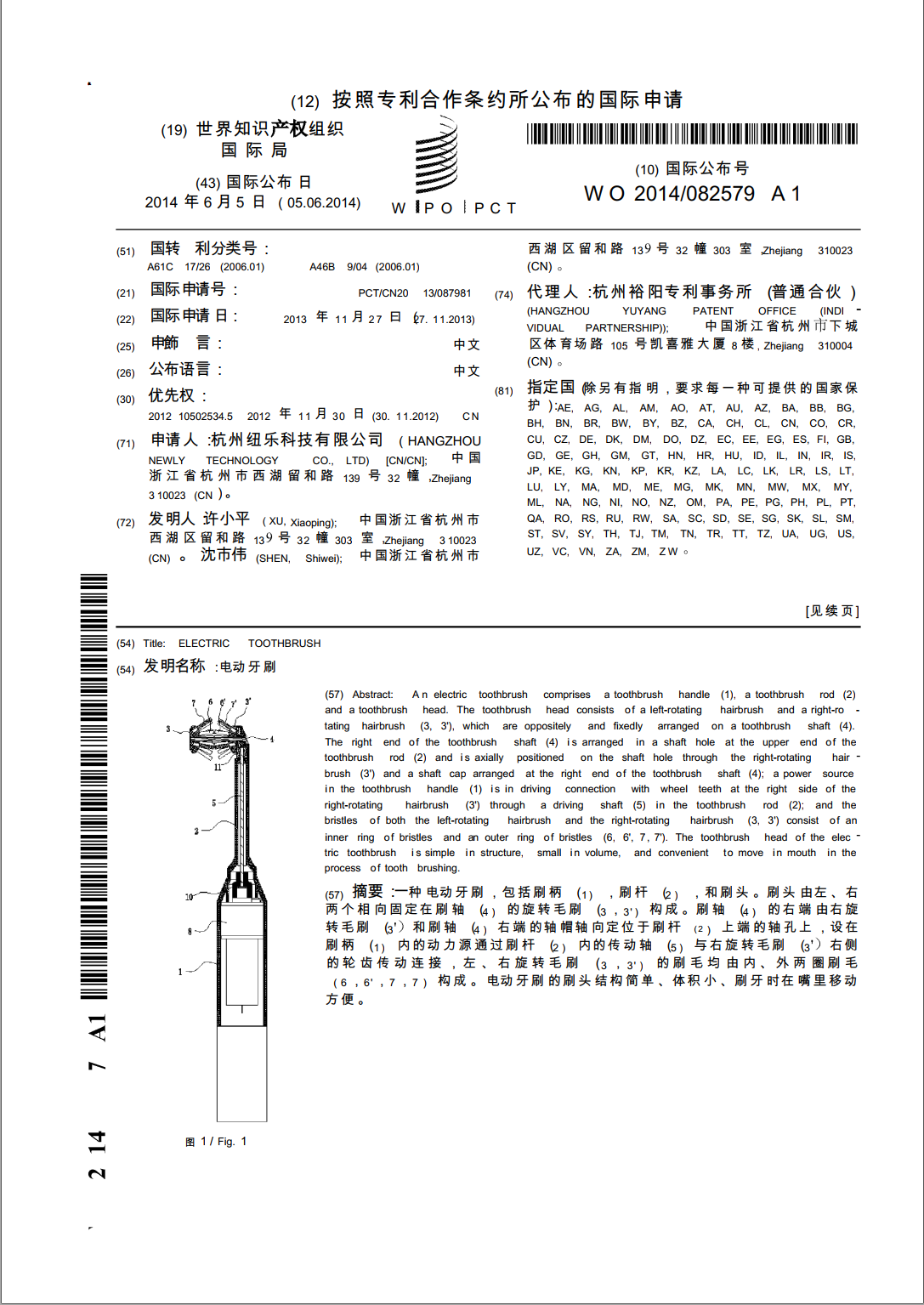 国際特許:PCT/CN2013/087981 アメリカ特許:US 14/424,888