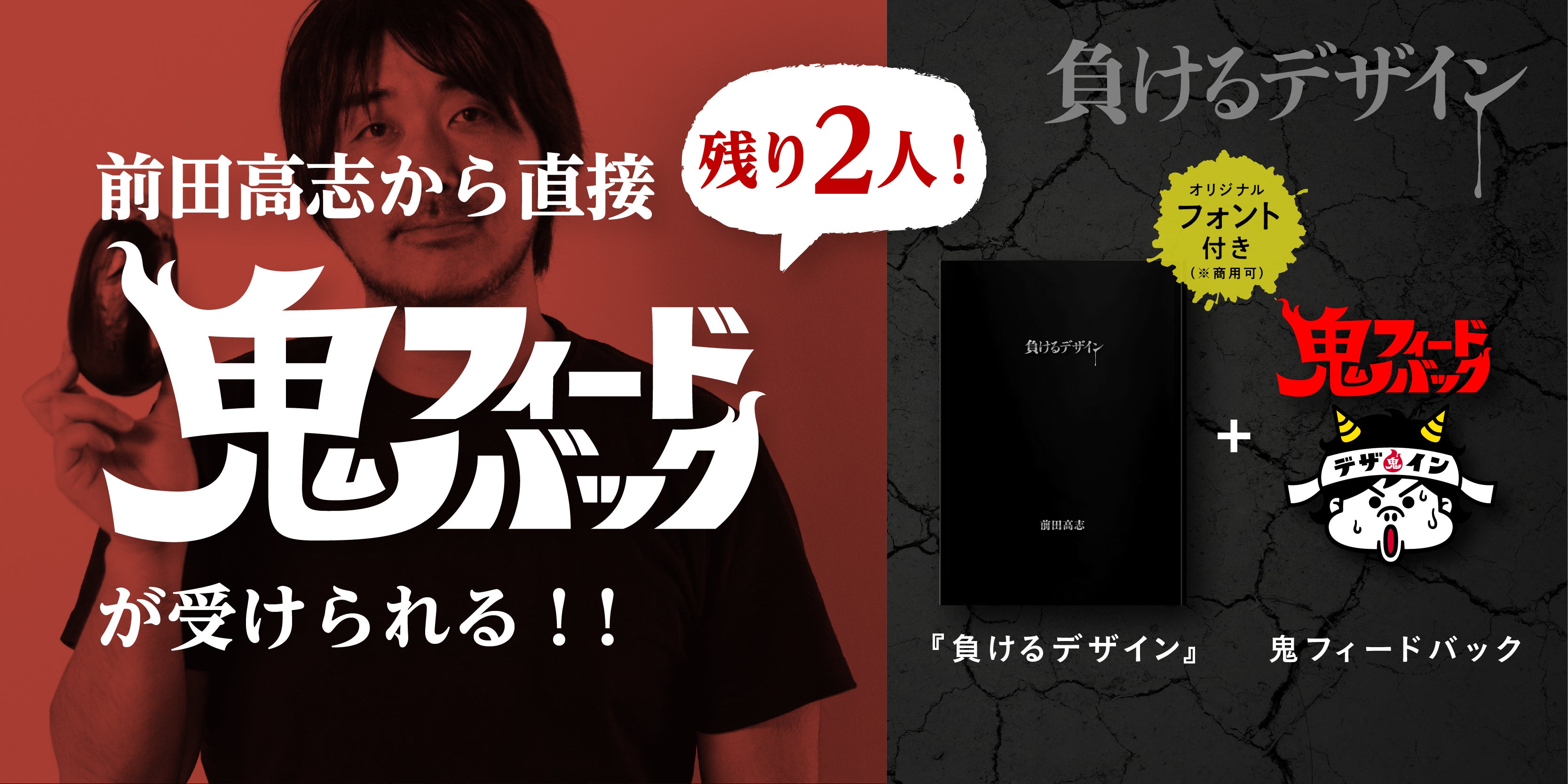 前田さんは先日『鬼フィードバック デザインのチカラは“ダメ出し”で育つ』という書籍を出版しました。書籍では前田デザイン室メンバーへのフィードバックでしたが、こちらのリターンを支援いただくと、どなたでも前田さんの鬼フィードバックを受けられます。(今回の鬼フィードバックはLINEのオープンチャットを使用しておこないます)