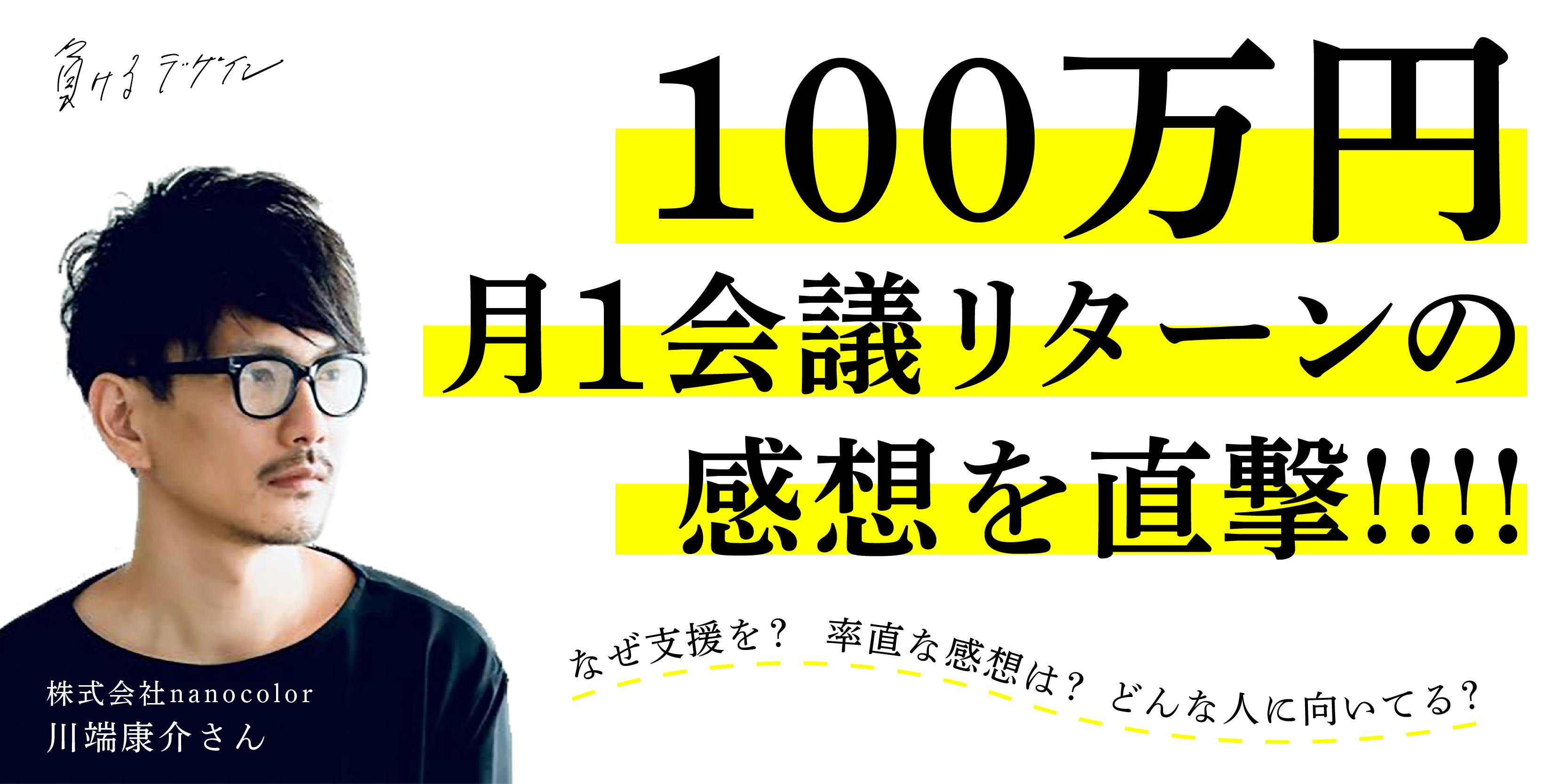 今回は、前田デザイン室が2019年に実施した「モザイクパンツ」プロジェクトにて、この100万円月1回ミーティングセットにご支援いただいた、株式会社nanocolor(ナノカラー)の川端康介さんに率直な感想をインタビューしました。
