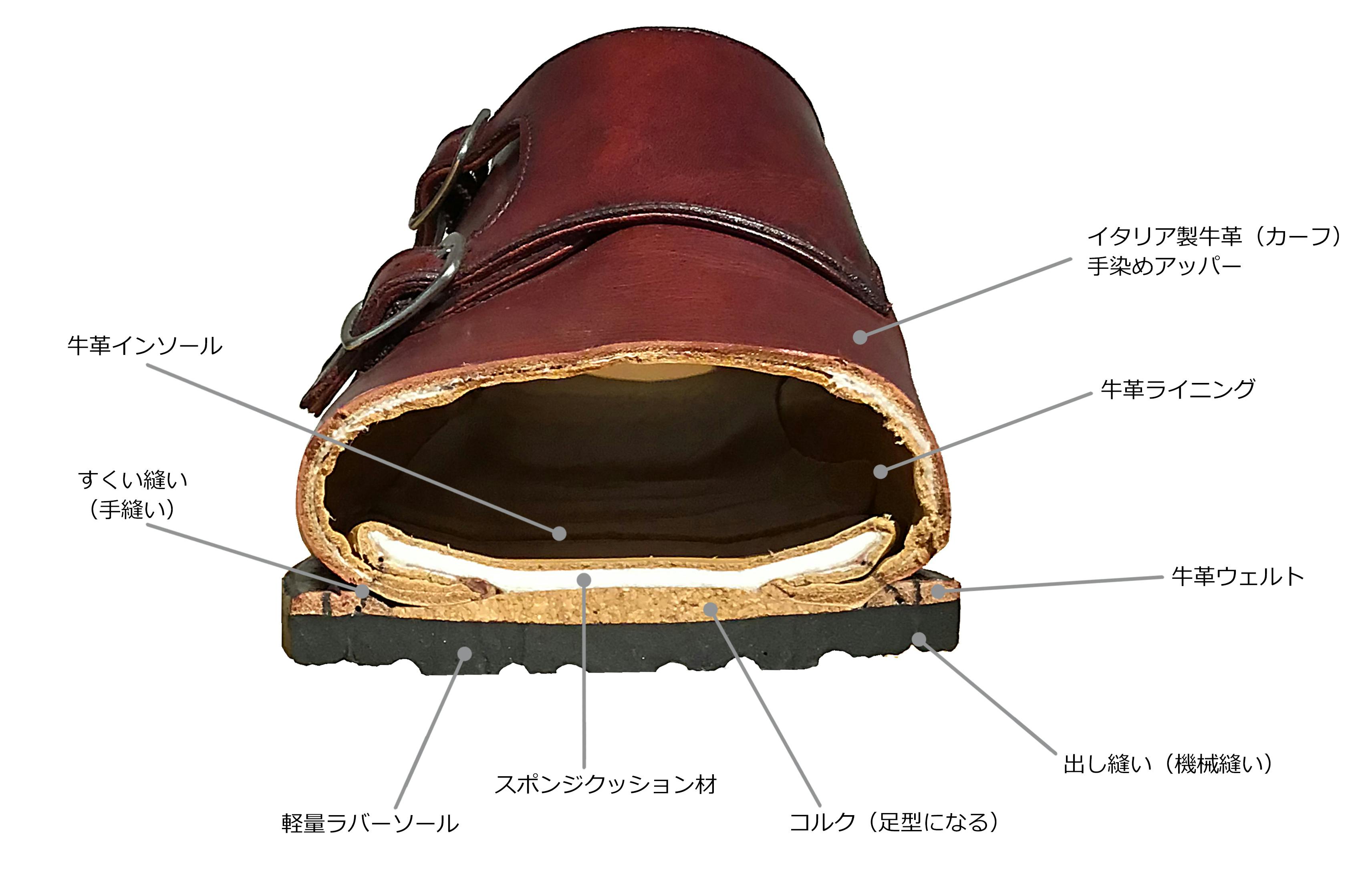 それと、変な履きジワも嫌なので、イタリアの厳選した革に手染めをして解決しようと。