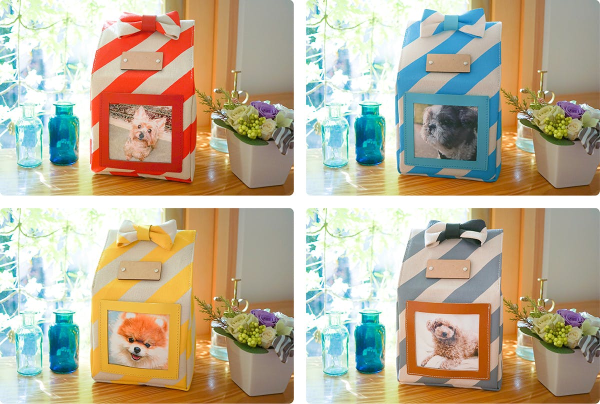 しんみりとしたいかにも仏具と感じるようなデザインではなく、モダンなインテリアに溶け込み、お部屋が明るく楽しい雰囲気になるようなポップな見た目と、綿100%の帆布素材の素朴な温かさ。お家の窓枠に模したフォトフレームに大切なあの子の写真を入れれば、見るたびにおうちの中からにっこりと笑いかけてくれます。