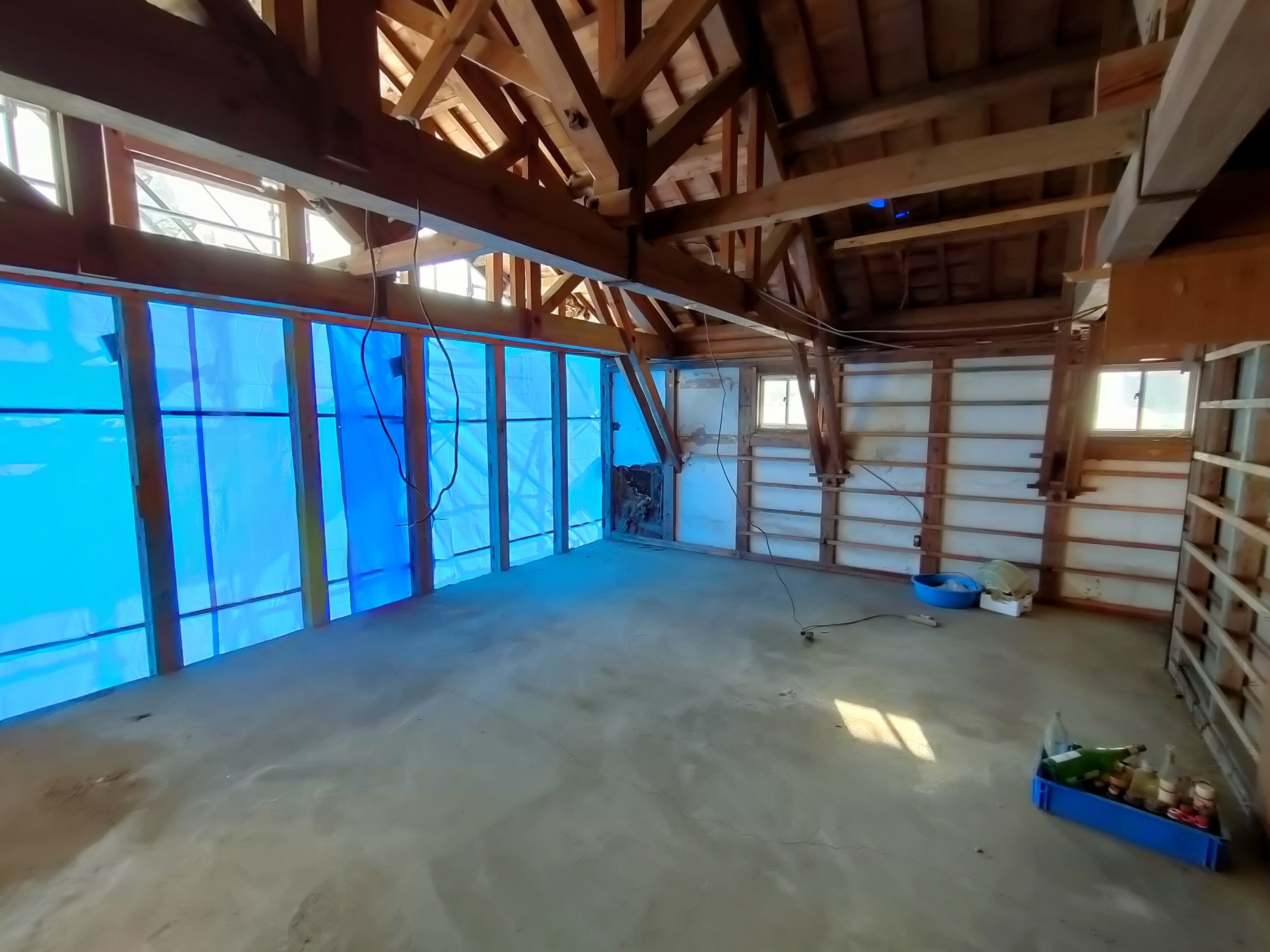 高島市は大雪となりましたが、皆さん大丈夫でしょうか?旧漁業倉庫の作業はコツコツと進んでおりまして、足の踏み場も無かった室内はご覧の通りスッキリしました!ほこりまみれになりながらバールで内装を剥がしていたのが懐かしいです。年末に職人さんに無理をお願いして動いていただいてましたが、昨日の大雪で資材が届かないとの事で年内はここまでとなりました。年末の忙しい時に無理なお願い(費用も工事内容も)を聞いてくれた工事関係者の皆さん、本当にありがとうございました。ブルーシートの所の柱の間がガラスになります。考えるだけでワクワクします!