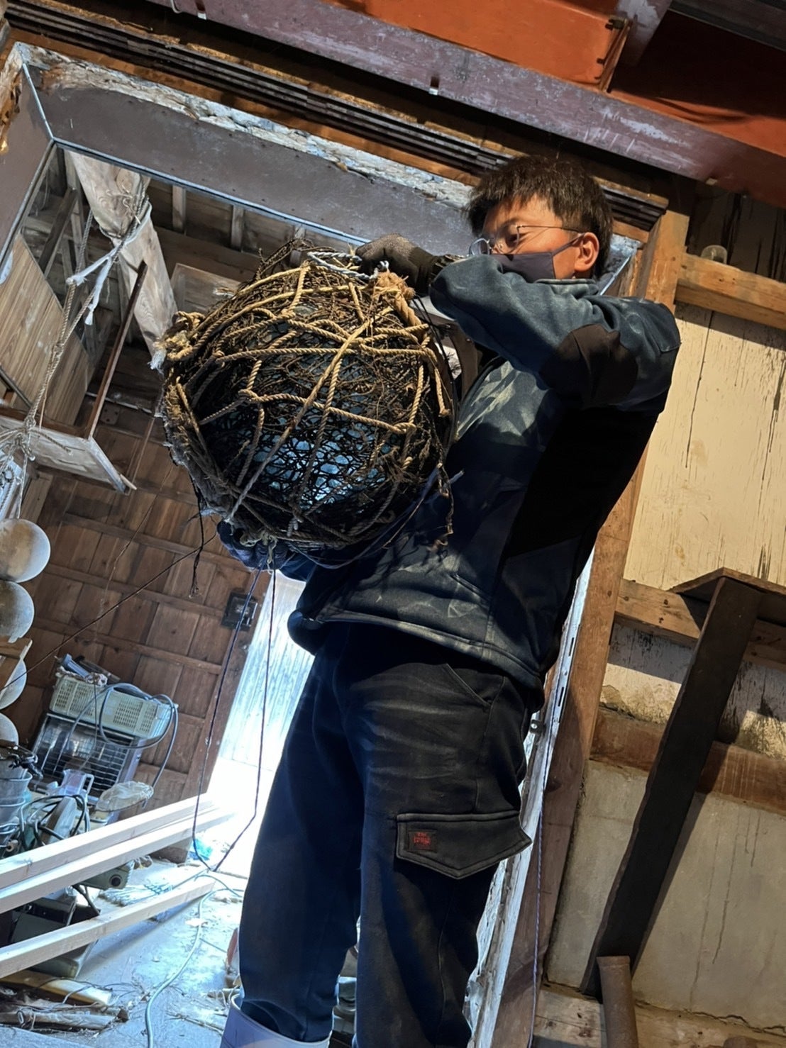 掘り出すとブイの代わりに使われていたガラス玉を発見!!