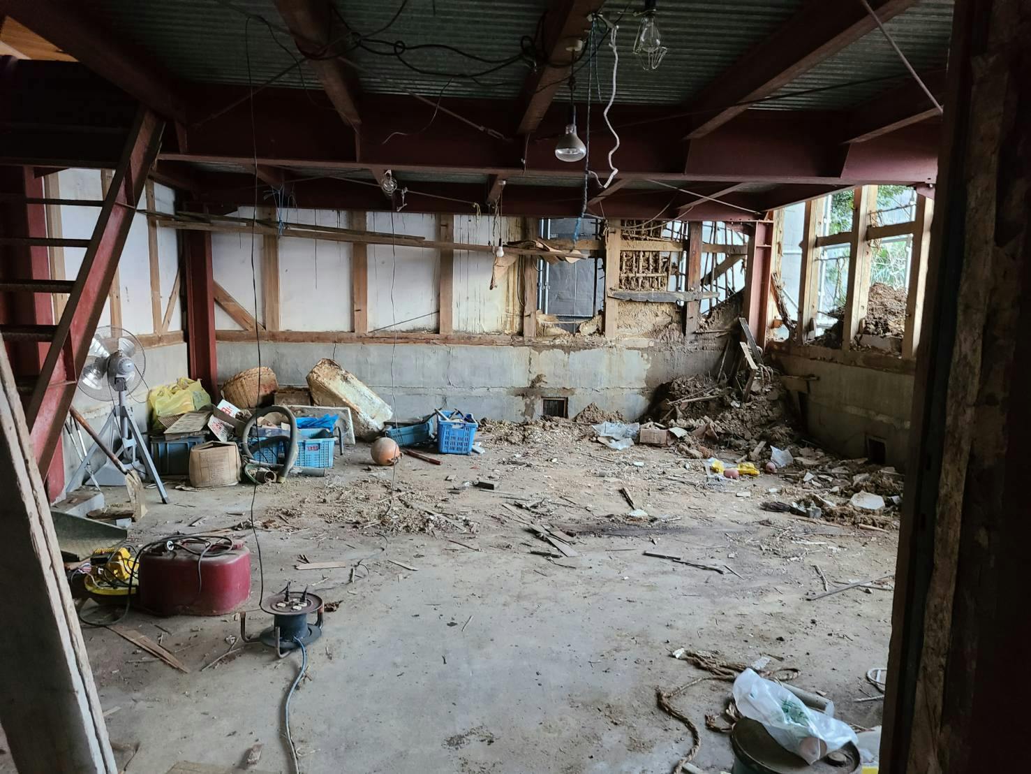 そんな寒い朝ですが建物の改修は進めていただいておりまして、二部屋に分かれていた内装を解体していただきました。