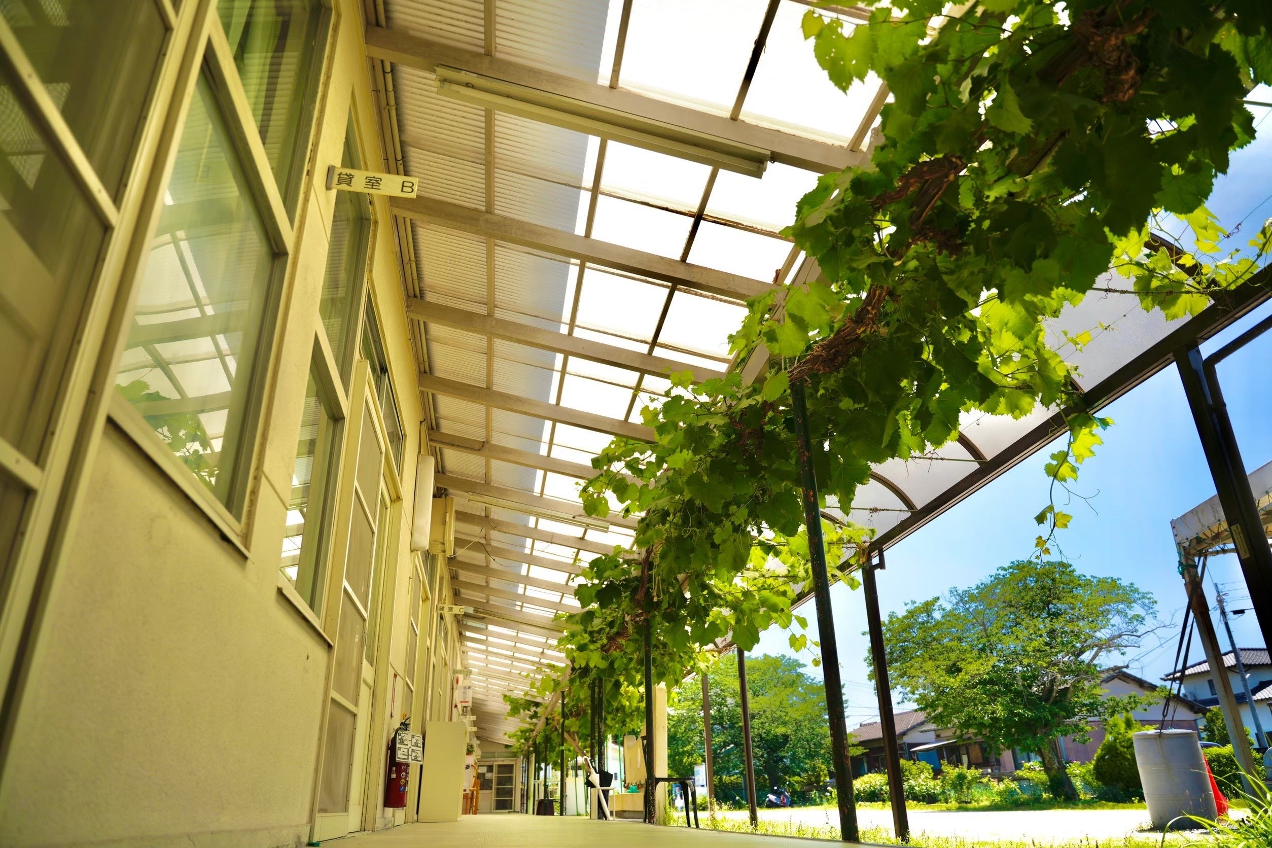 庭の真ん中にある一本のぶどうの木が、左右に大きく枝を伸ばし、つながり広がり支え合って、たくさんの葡萄を実らせるように、ココを訪れる人たちが、繋がり、広がり、支え合って、たくさんの夢が生まれています。